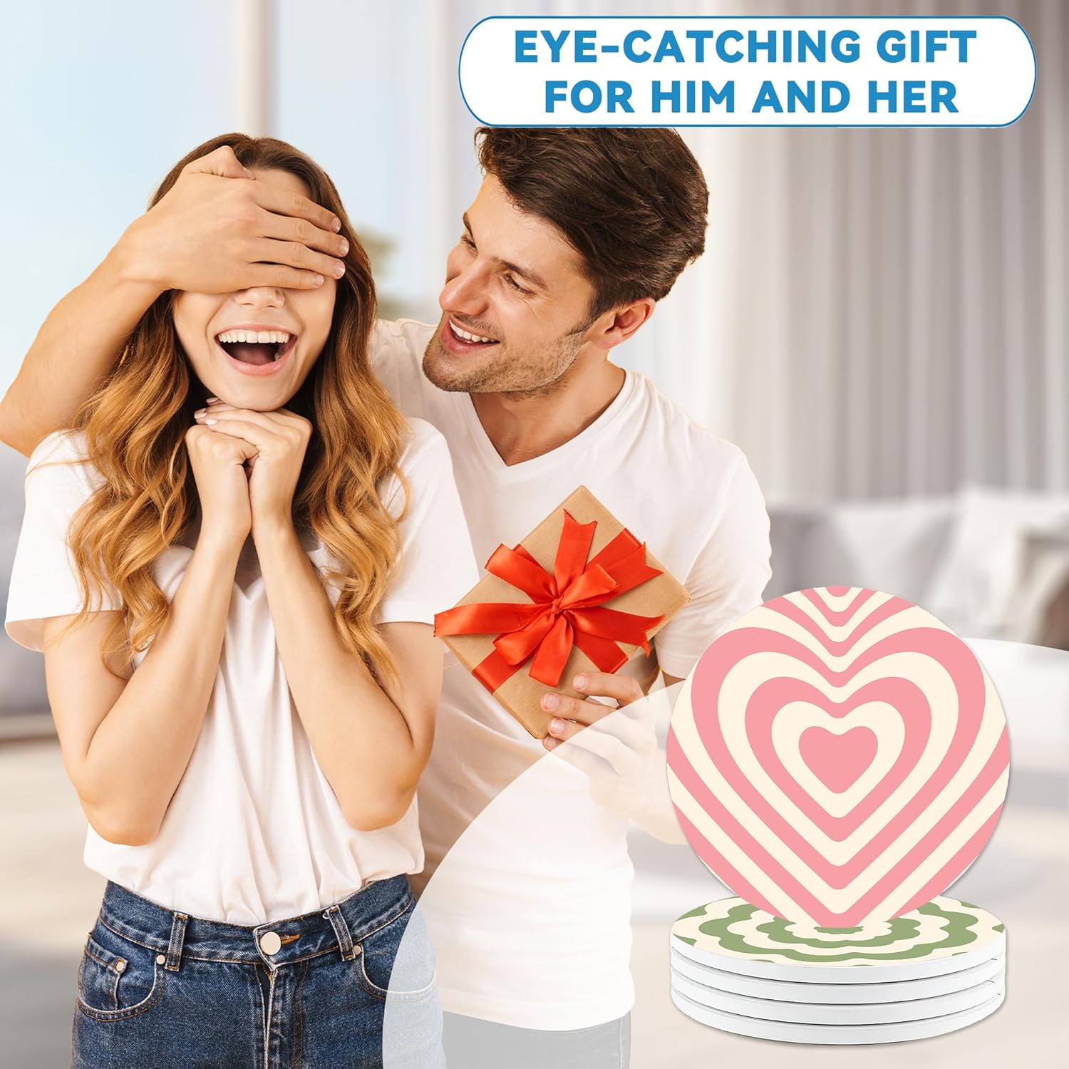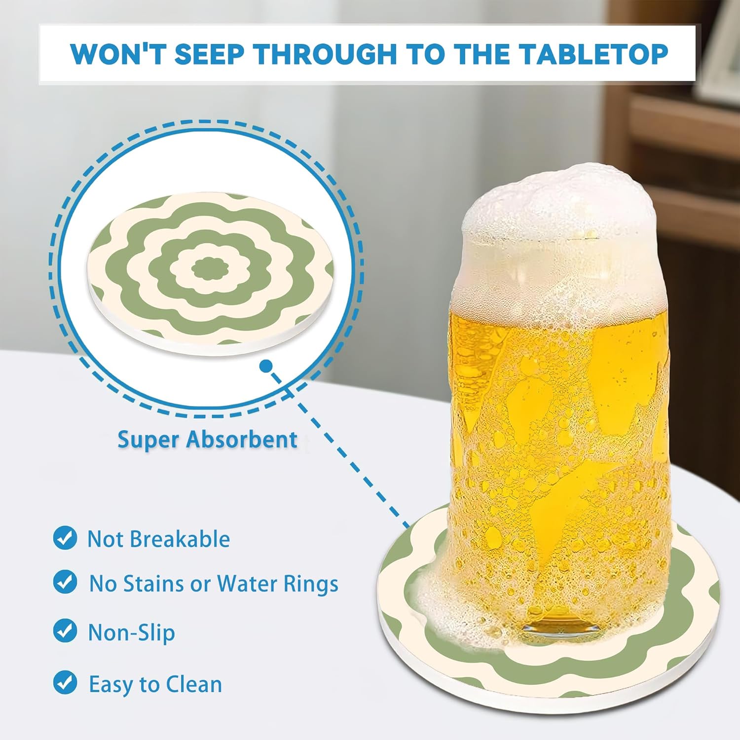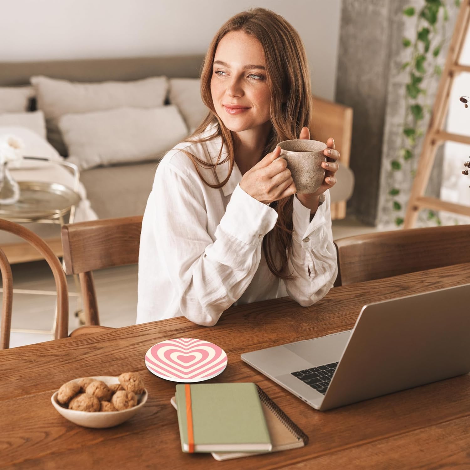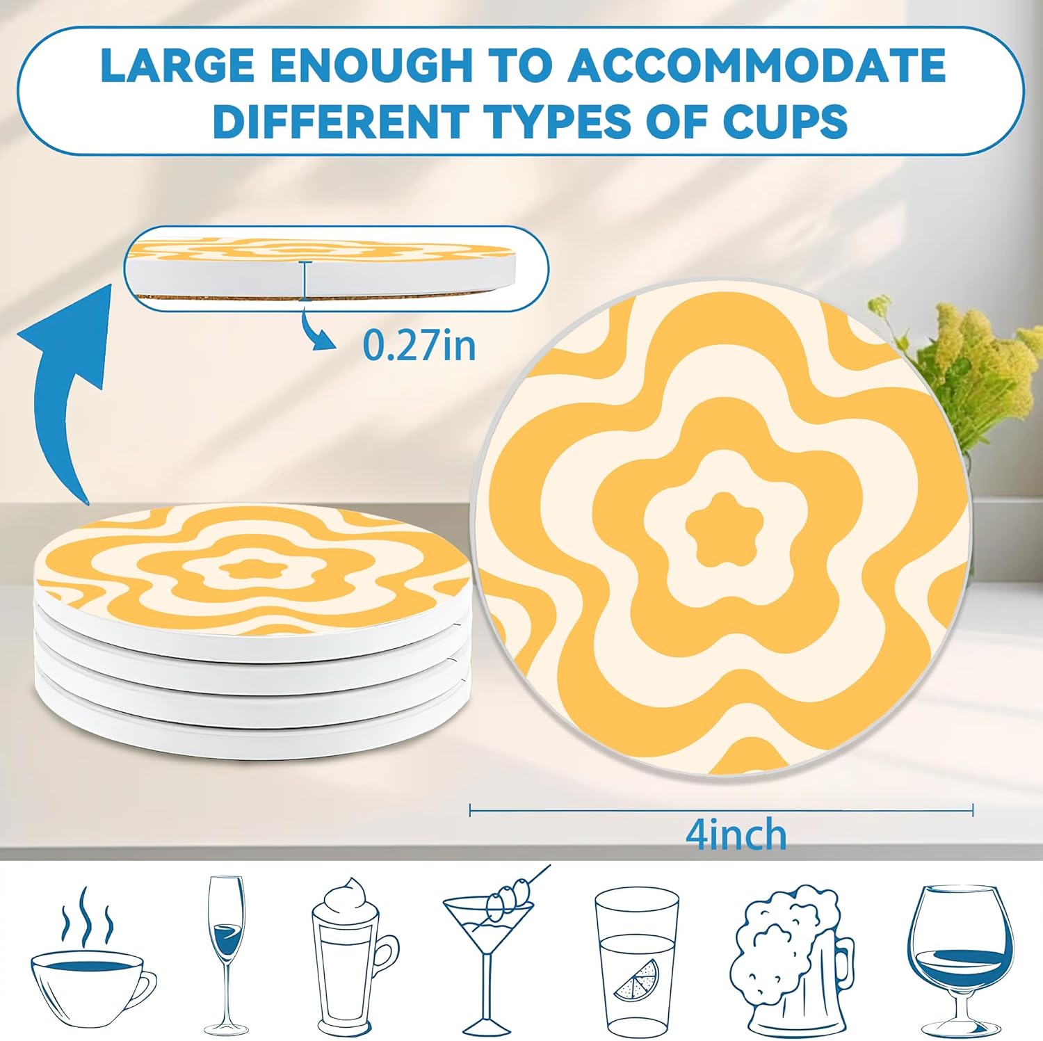 Drinks Coasters Set of 4, Groovy Wave Pattern Round 4" Cup Coasters, Absorbent Ceramic Stone Coasters with Cork Base, Cute Coasters for Table Home Décor, Ideal Gifts for Women Men