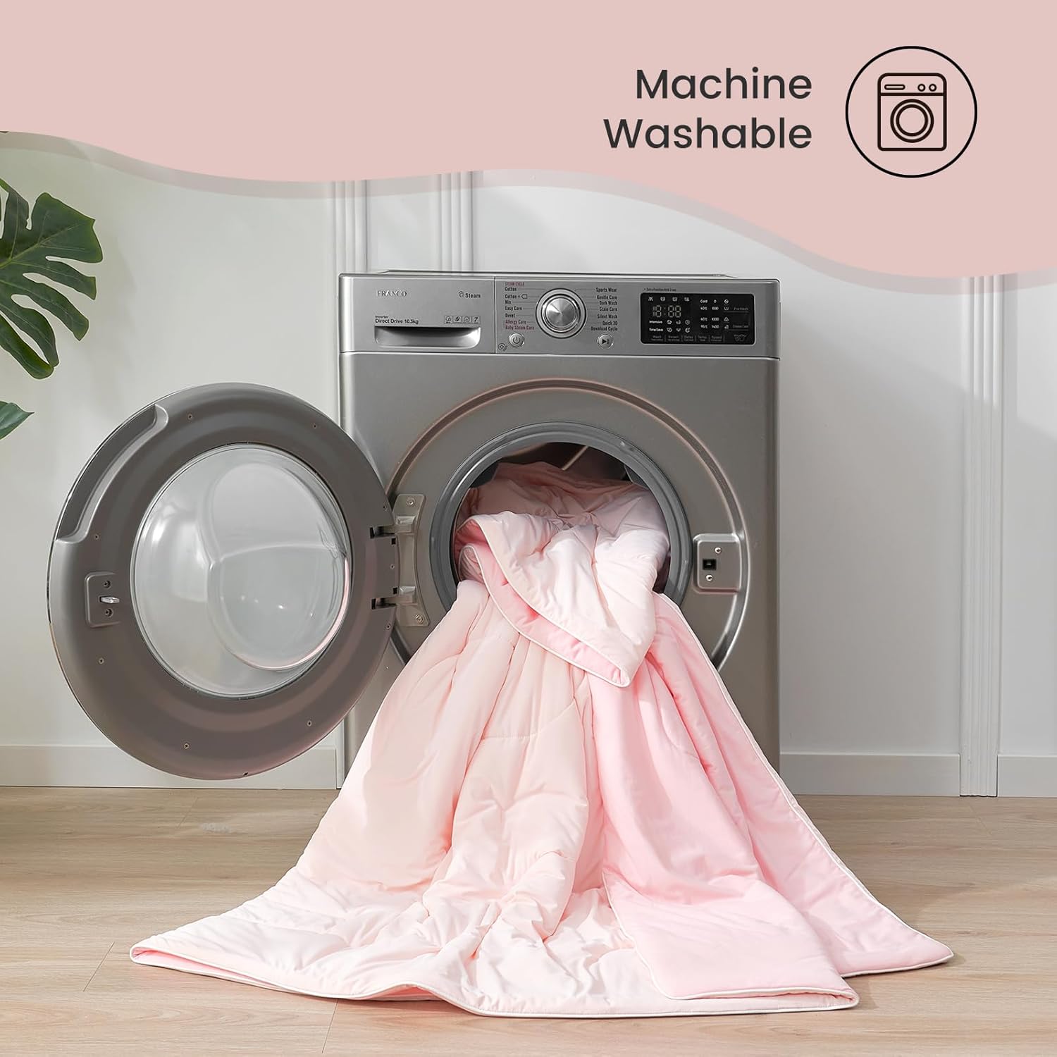 - 【EASY CARE】Fall in love at first touch with the soft and sensitive skin-friendly fabric; Lightweight yet densely woven, the knitted fibers are 5x thinner and stronger than silk; This washable and dryer-safe Comforter stays luxuriously soft after every wash. It's the ultimate choice for anyone seeking comfort, freshness, and relaxation. For better results, it's suggested to wash the comforter before the first use.