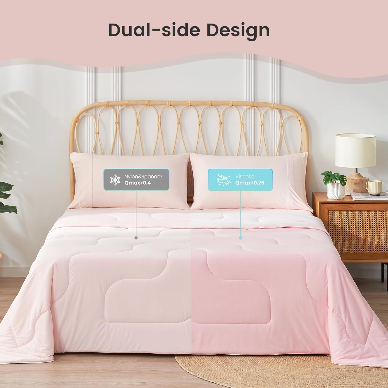 Cozy Bliss Viscose Cooling Comforter Queen Size, Reversible Cooling Blanket for Hot Sleepers and Night Sweats, Q-Max 0.4 Breathable Summer Comforter Quilt, Lightweight Soft Silky Smooth, Cool Pink
