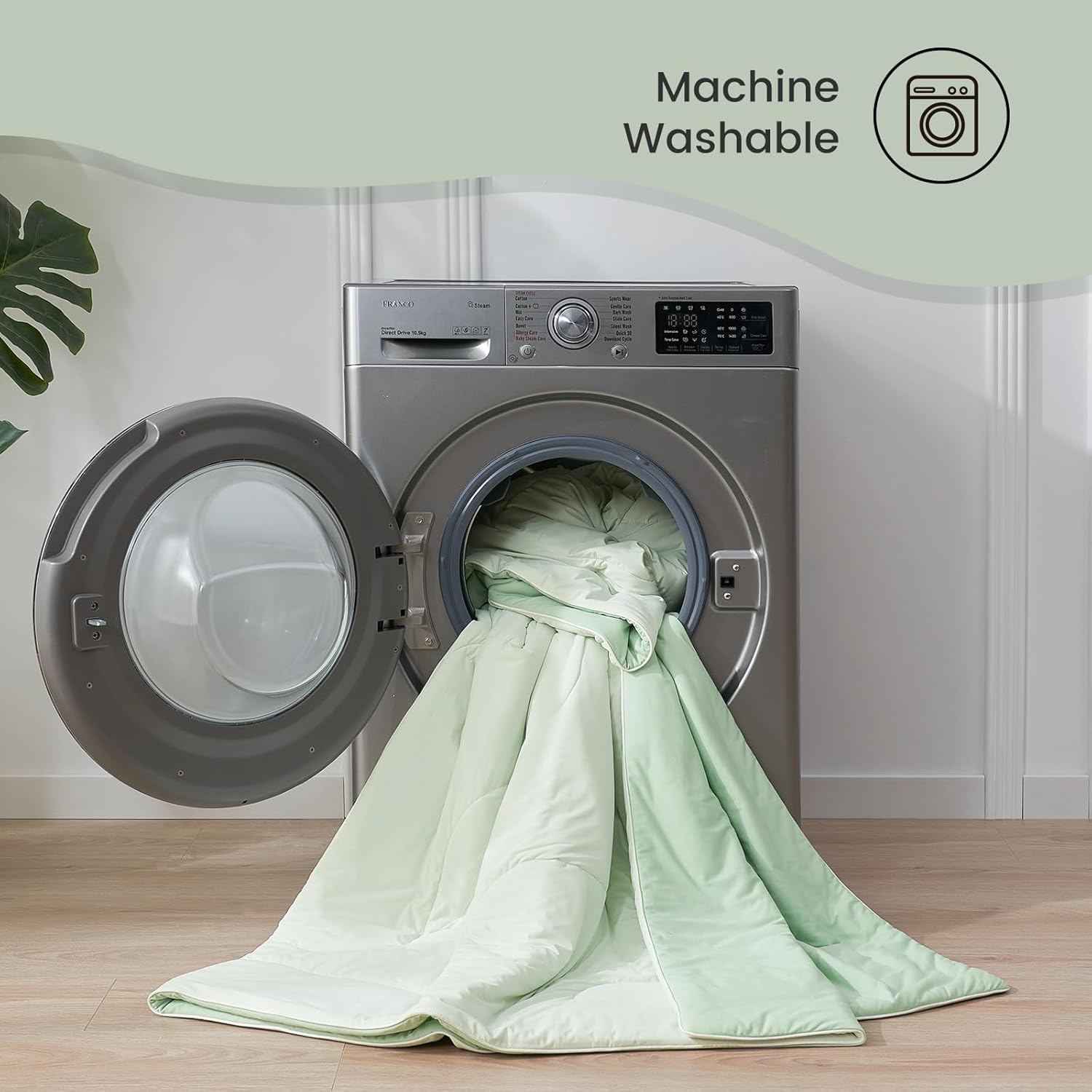 - 【EASY CARE】Fall in love at first touch with the soft and sensitive skin-friendly fabric; Lightweight yet densely woven, the knitted fibers are 5x thinner and stronger than silk; This washable and dryer-safe Comforter stays luxuriously soft after every wash. It's the ultimate choice for anyone seeking comfort, freshness, and relaxation. For better results, it's suggested to wash the comforter before the first use.
