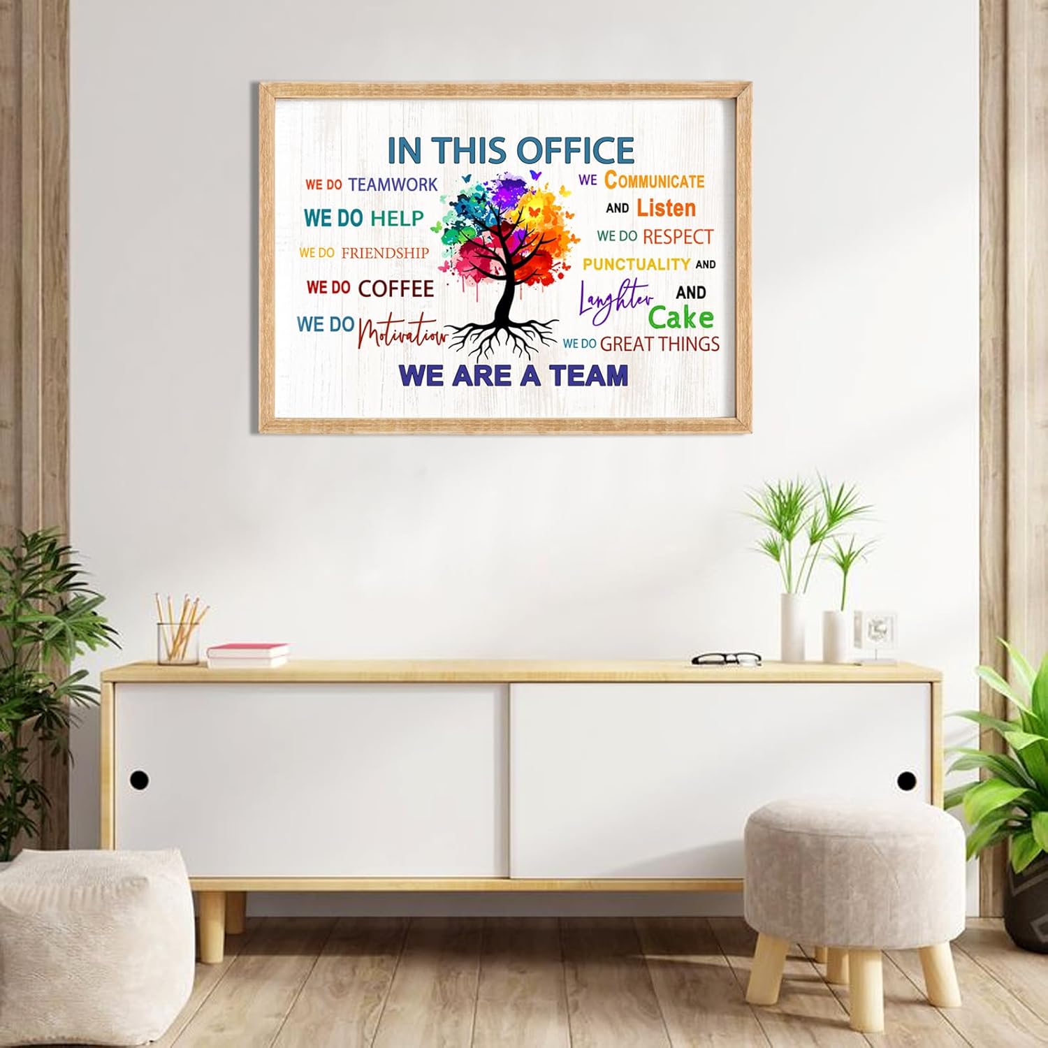 In This Office We Are A Team Wall Decor 24x18 Inch Frame Office Inspirational Wall Art, Motivational Teamwork Wooden Hanging Sign