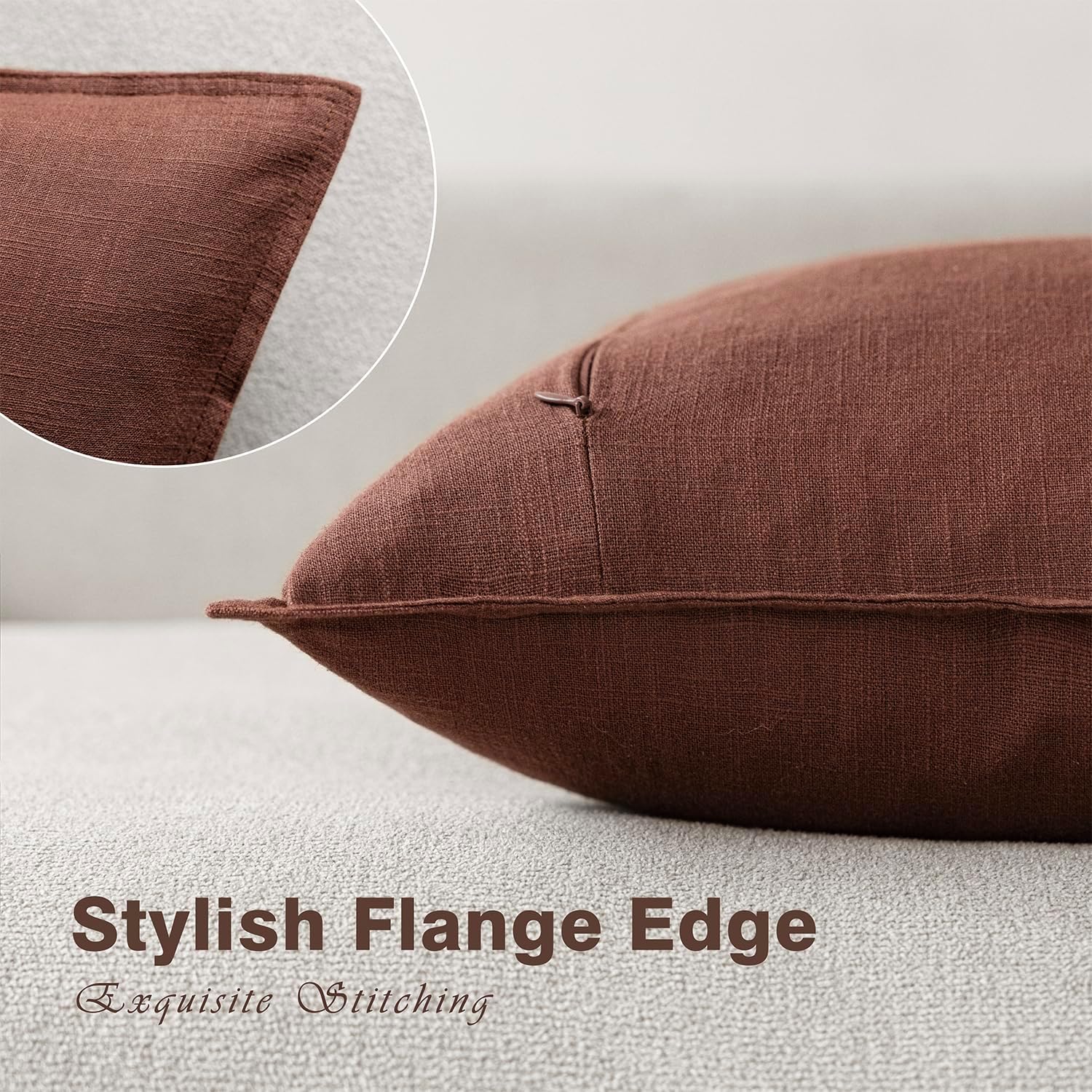 Foindtower Pack of 2, Decorative Linen Soild Throw Pillow Covers Soft Accent Euro Cushion Case Boho Farmhouse Pillowcase for Chair Couch Sofa Bedroom Living Room Home Decor 24 x 24 Inch Rust Red