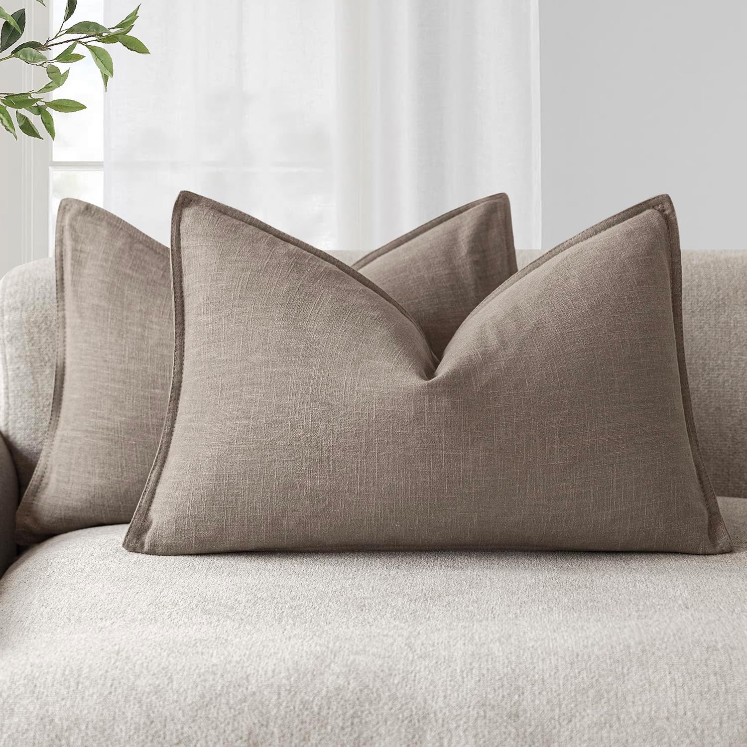 Foindtower Pack of 2, Decorative Linen Soild Throw Pillow Covers Accent Lumbar Cushion Case Boho Farmhouse Pillowcase for Chair Couch Sofa Bedroom Living Room Home Decor 12 x 20 Inch Brown Tan