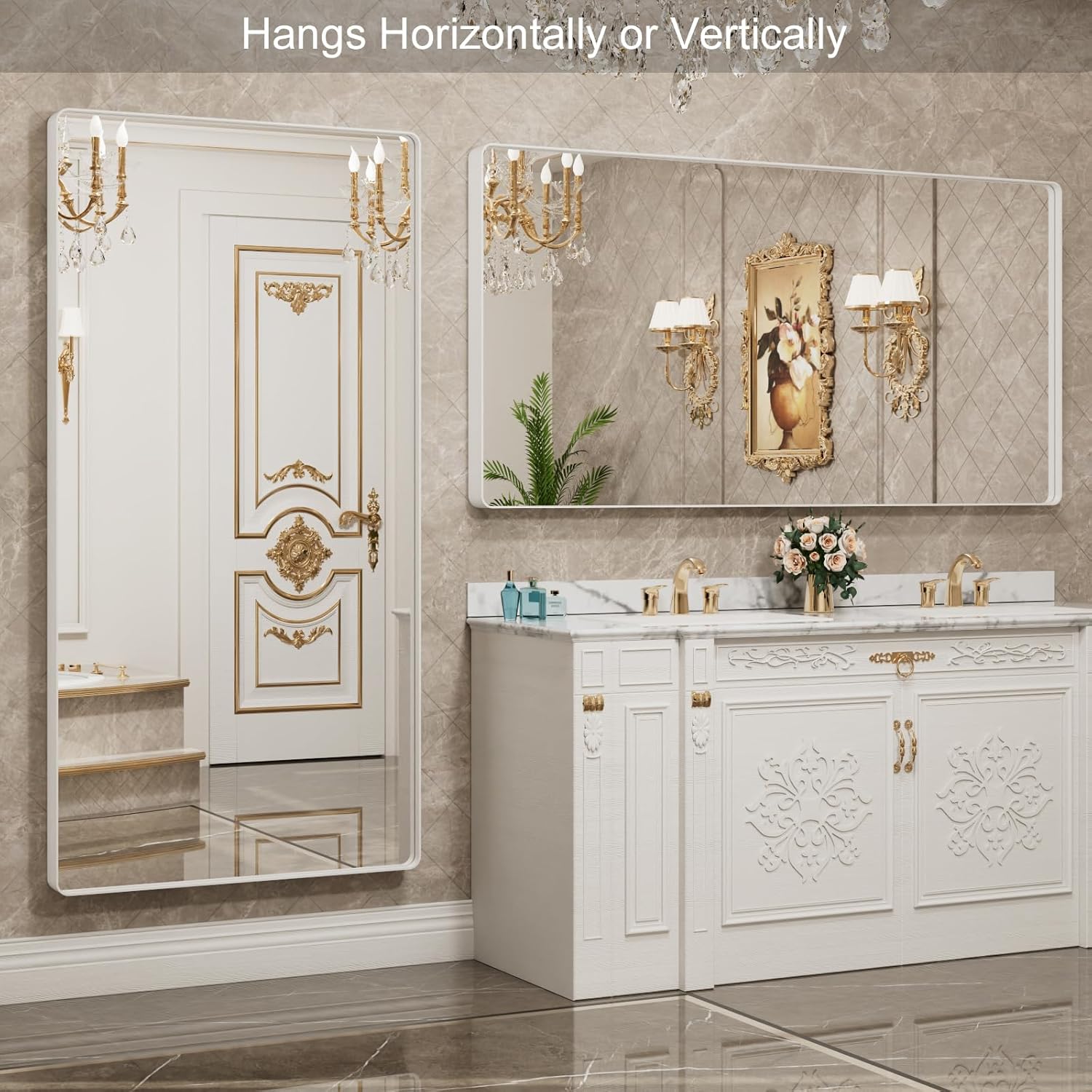 - 【Sturdy Mirror with Premium Materials】: LOAAO white bathroom mirror with 4MM tempered glass features shatter-proof, burst-proof; Aluminum alloy frame design which features anti-rust; Ideal for using in bathroom. Solid and sturdy, durable for use