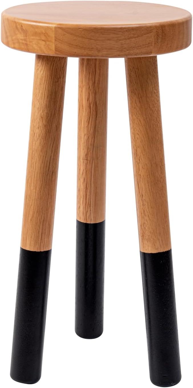 Rubber Wood 9" Round Plant Stand |Dip Dyed Black Accent Stool |Small Drinking Table |Side Table(18" H)