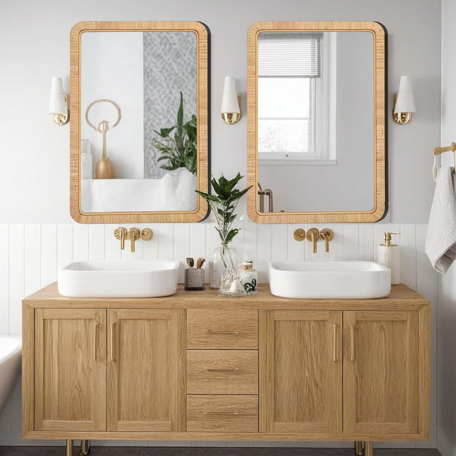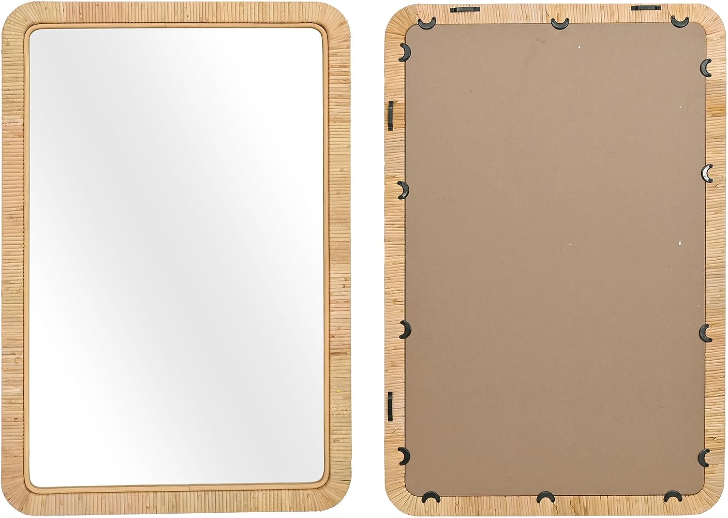 - 【Functional & Decorative】Perfect for everyday use and home styling, this mirror suits bathrooms, bedrooms, living rooms, hallways, or nurseries. Brightens up spaces and creates a cozy, open feel with its natural tones and elegant lines.