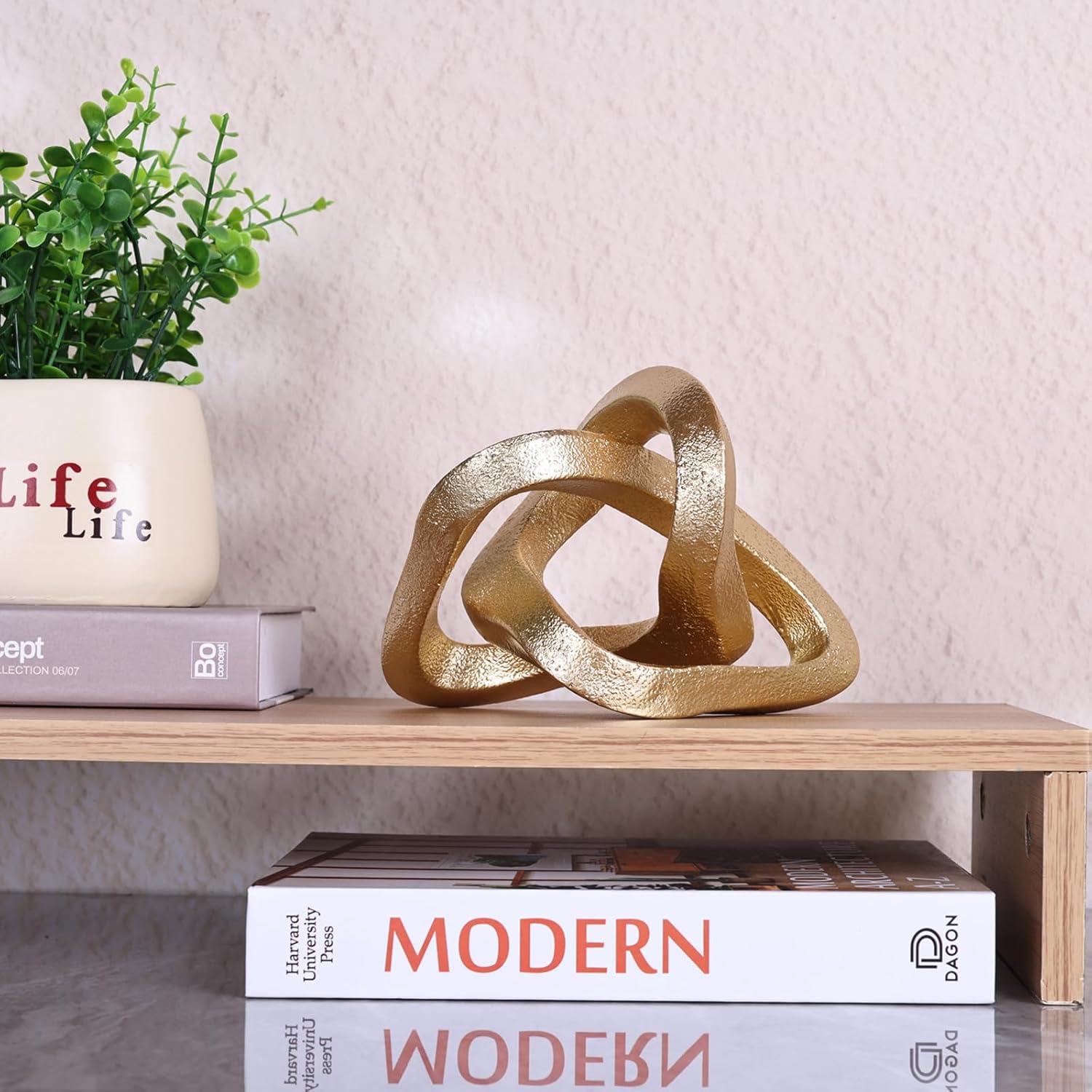 Infinity Knot Sculpture Gold Knot Decor Object, Abstract Knick Knacks Coffee Table Modern Statue, Gold Sculpture for Home Living Room Table Ornaments and TV Stand Bookshelf Decorative