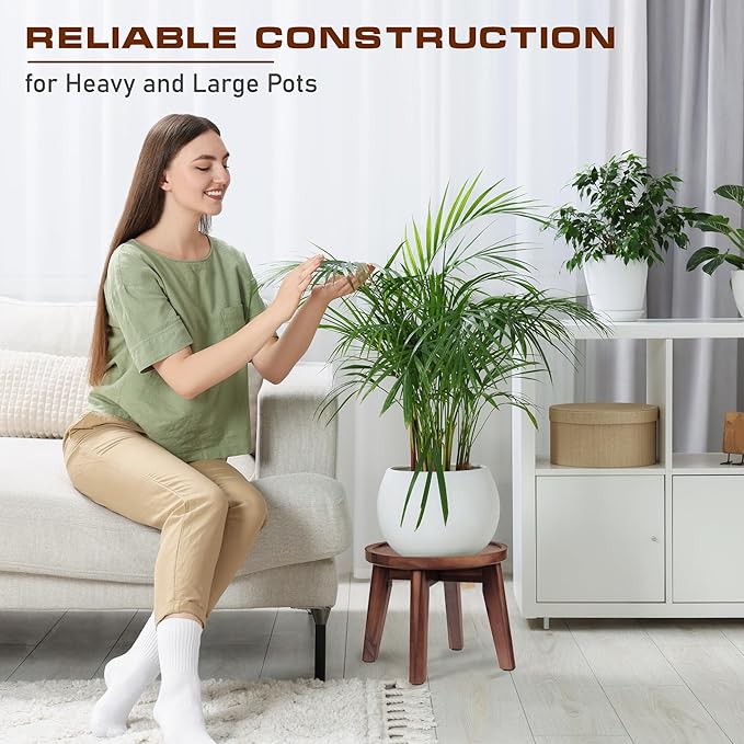 - Natural Acacia Wood in Dark Brown Color: Unlike plastic stands, which can appear cheap, or glass stands, which may be unsafe for homes with children or pets, our plant stand is crafted from premium acacia wood. This wood is renowned for its natural durability and rich dark brown color. Its elegant design complements any home décor while providing the strength needed to support even the heaviest pots.