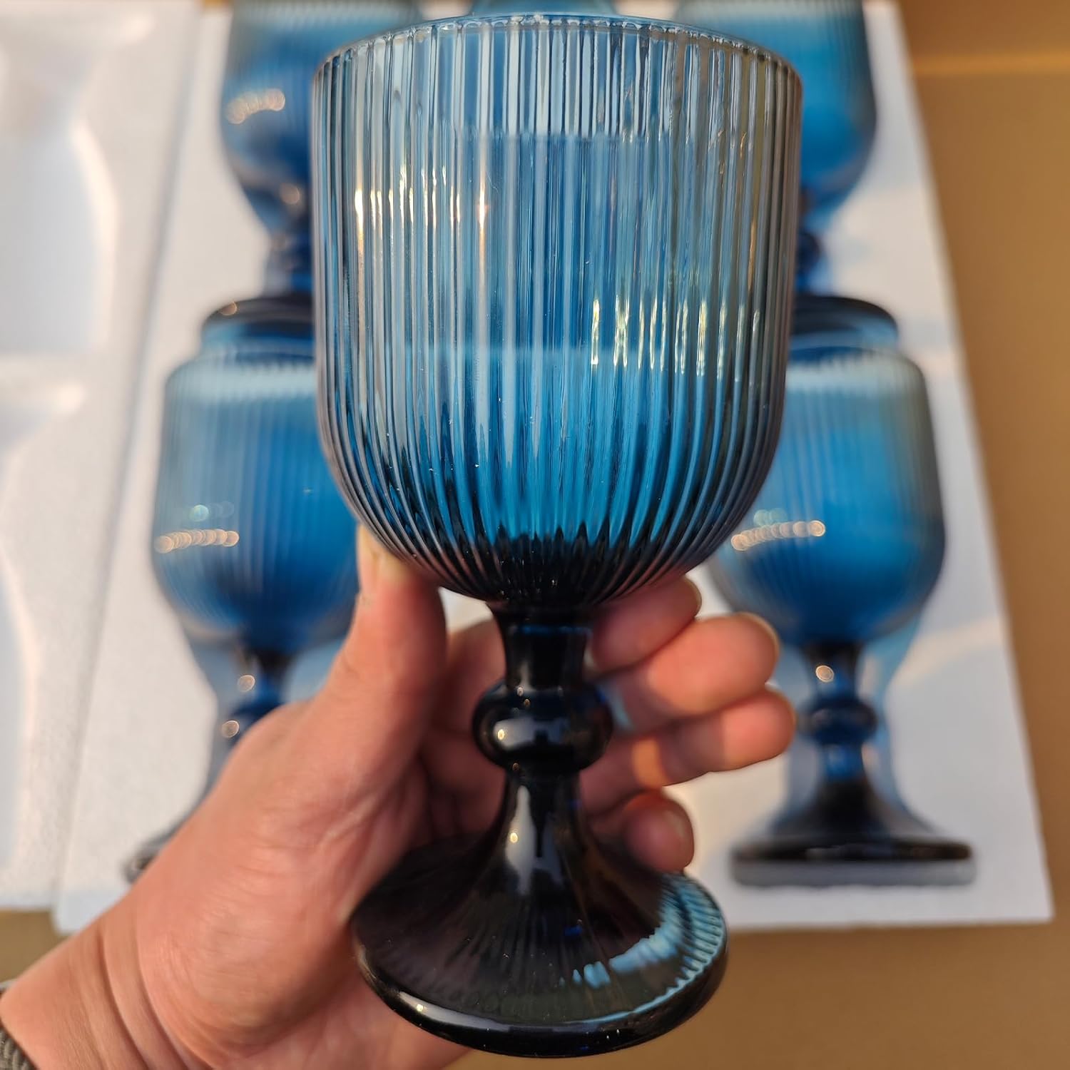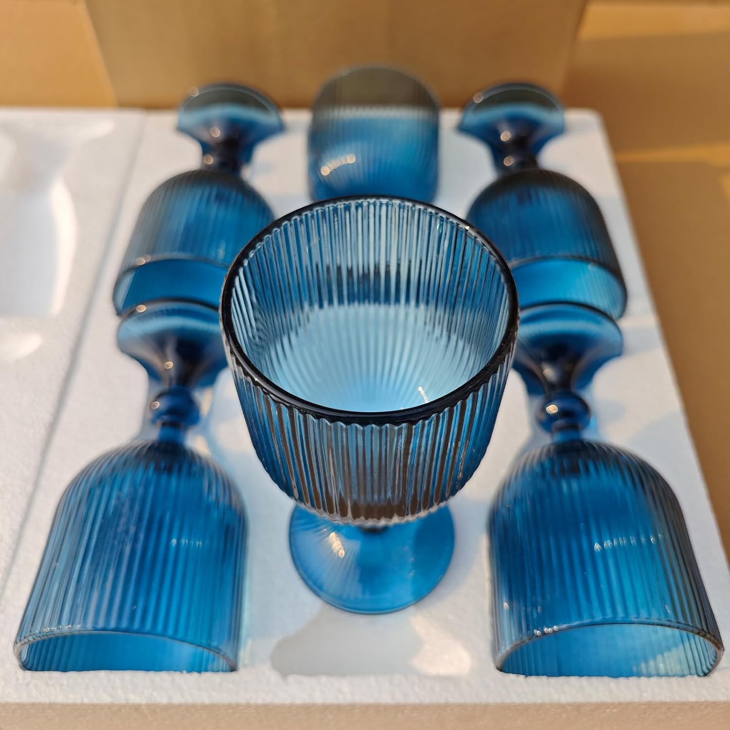 Blue Wine Glass Goblet Set of 6, 14 oz Blue Goblets Glassware, Colored Vintage Glassware for Weddings, Parties, Restaurants, Family Gatherings, Bars, Cafeterias, Dishwasher Safe