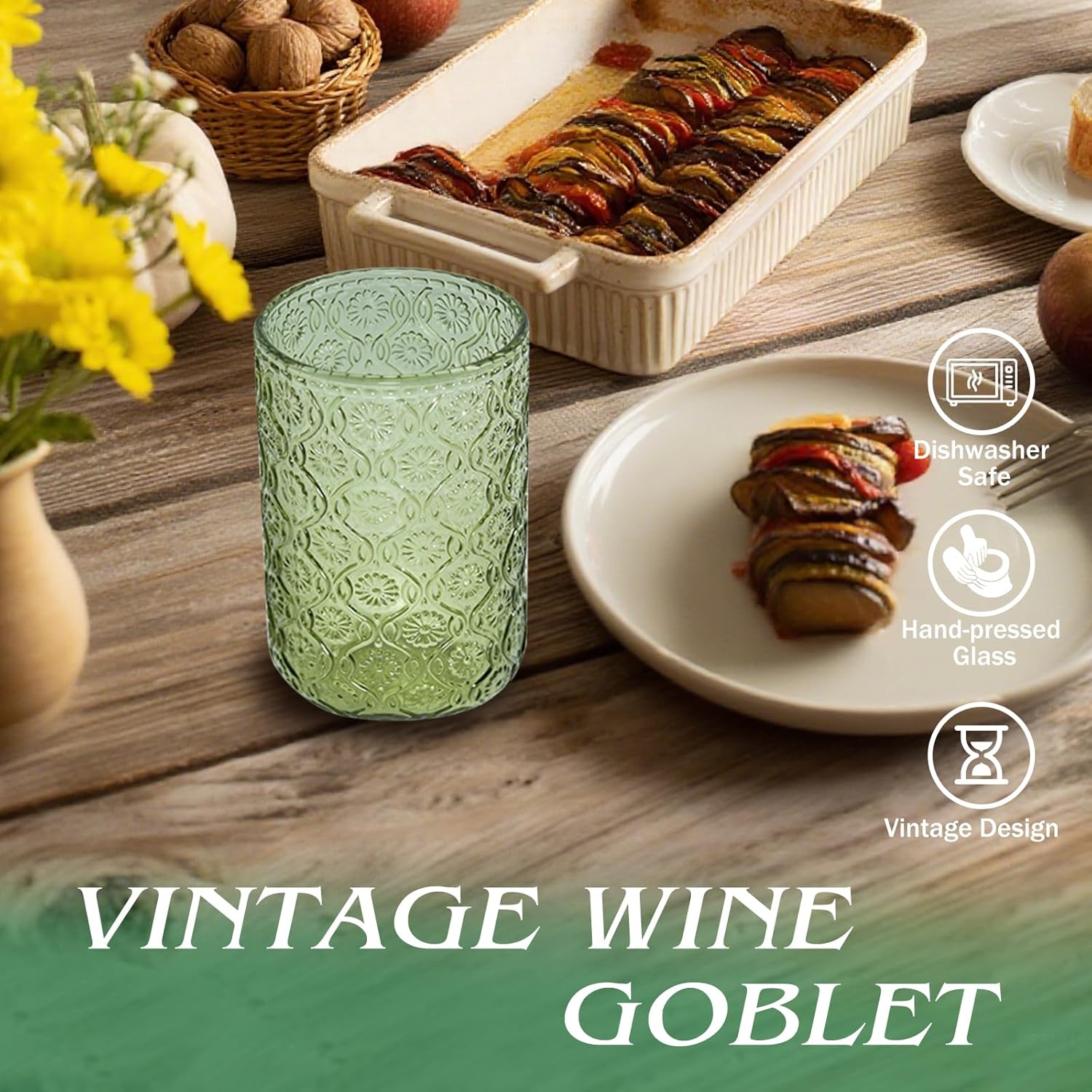 - QUALITY GLASS: Vintage wine glasses handmade with high quality green glass, Won't chip, peel or fade, dishwasher safe, durable, no coloring, colorless and odorless, giving you the perfect shade of green!