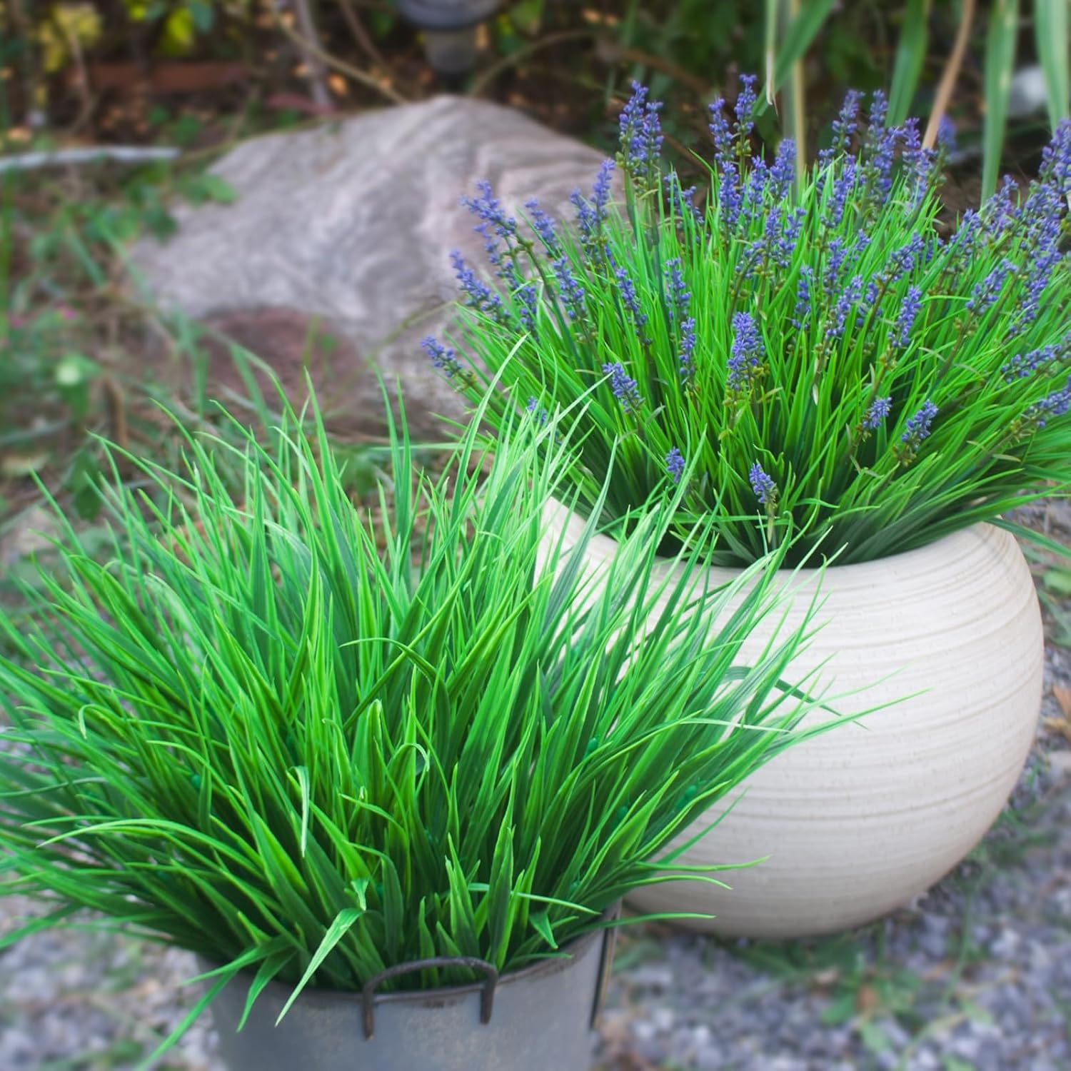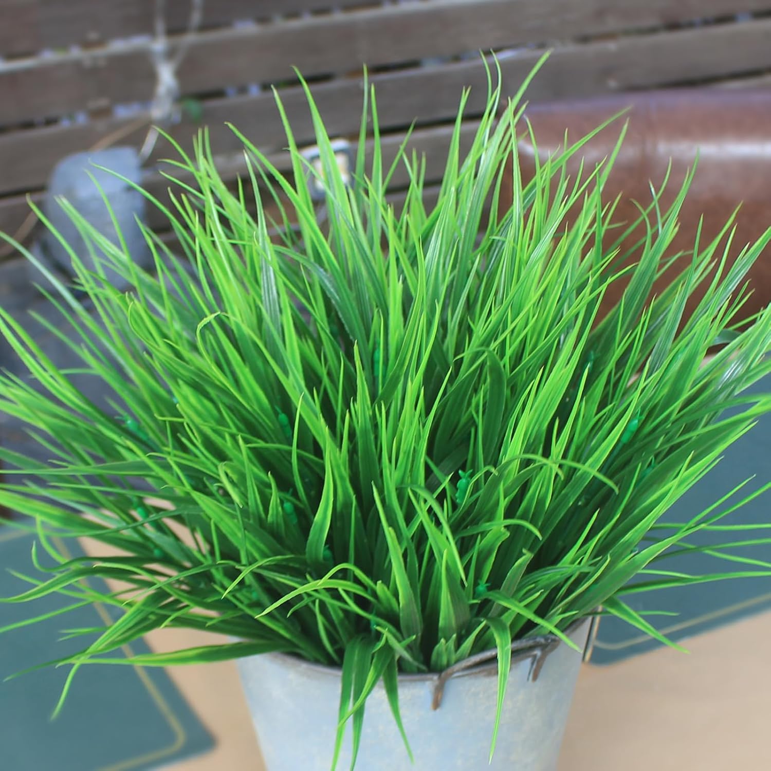 Faux Outdoor Plants 12 Bundles Artificial Boxwood Shrubs Grass Fake Greenery Green Plastic Leaf for Groud Planter Front Porch Patio Decor (12 Bundles Green Grass Plants)