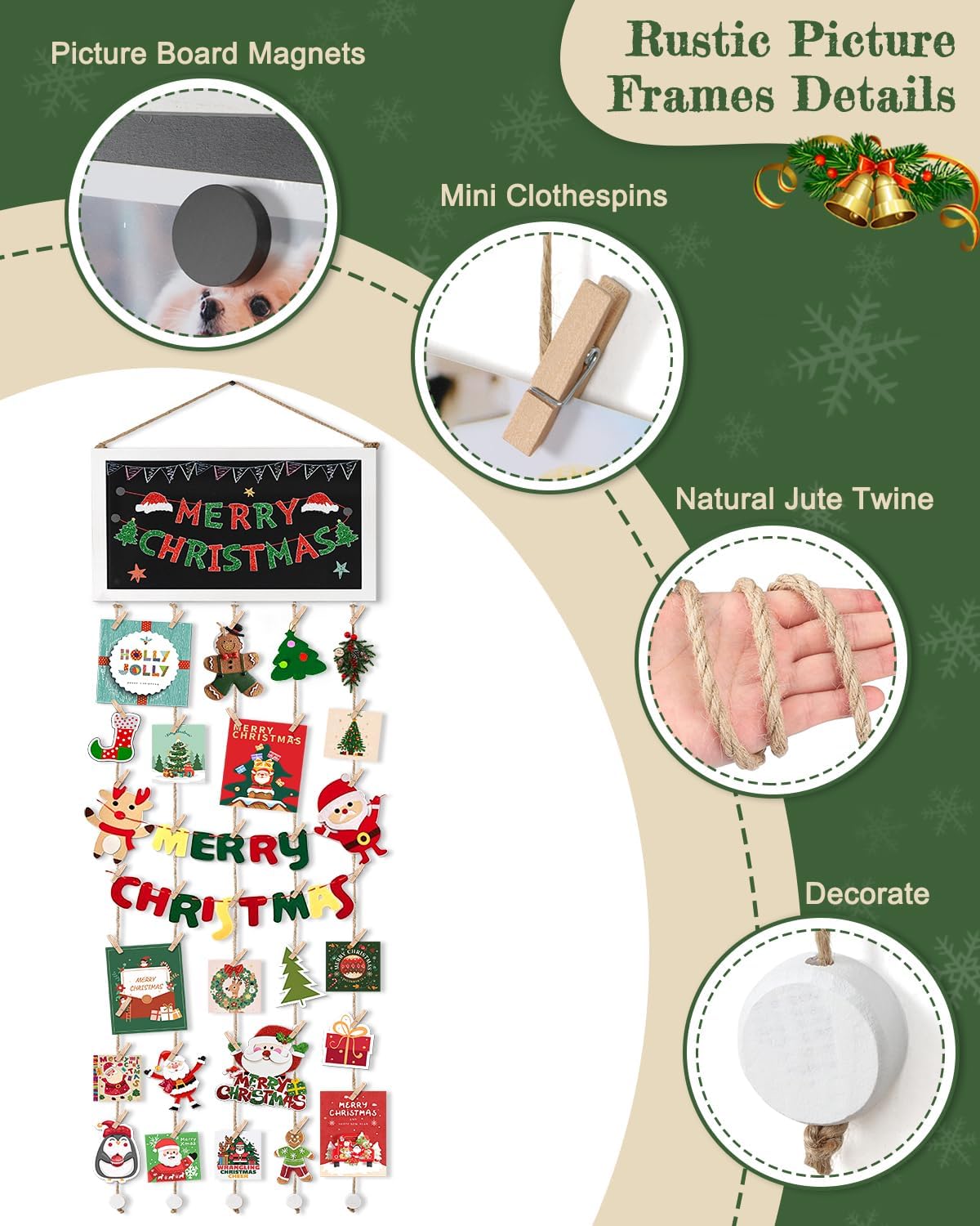 - Multi Photo Display: Simple design collage photo frames with 30 clips, 5 hemp rope, 3 magnets and 1 blackboard, you can cut the length of hemp rope as you want, which satisfies simple DIY design. What's more, it's easy to change the picture or cards with the 30 clips