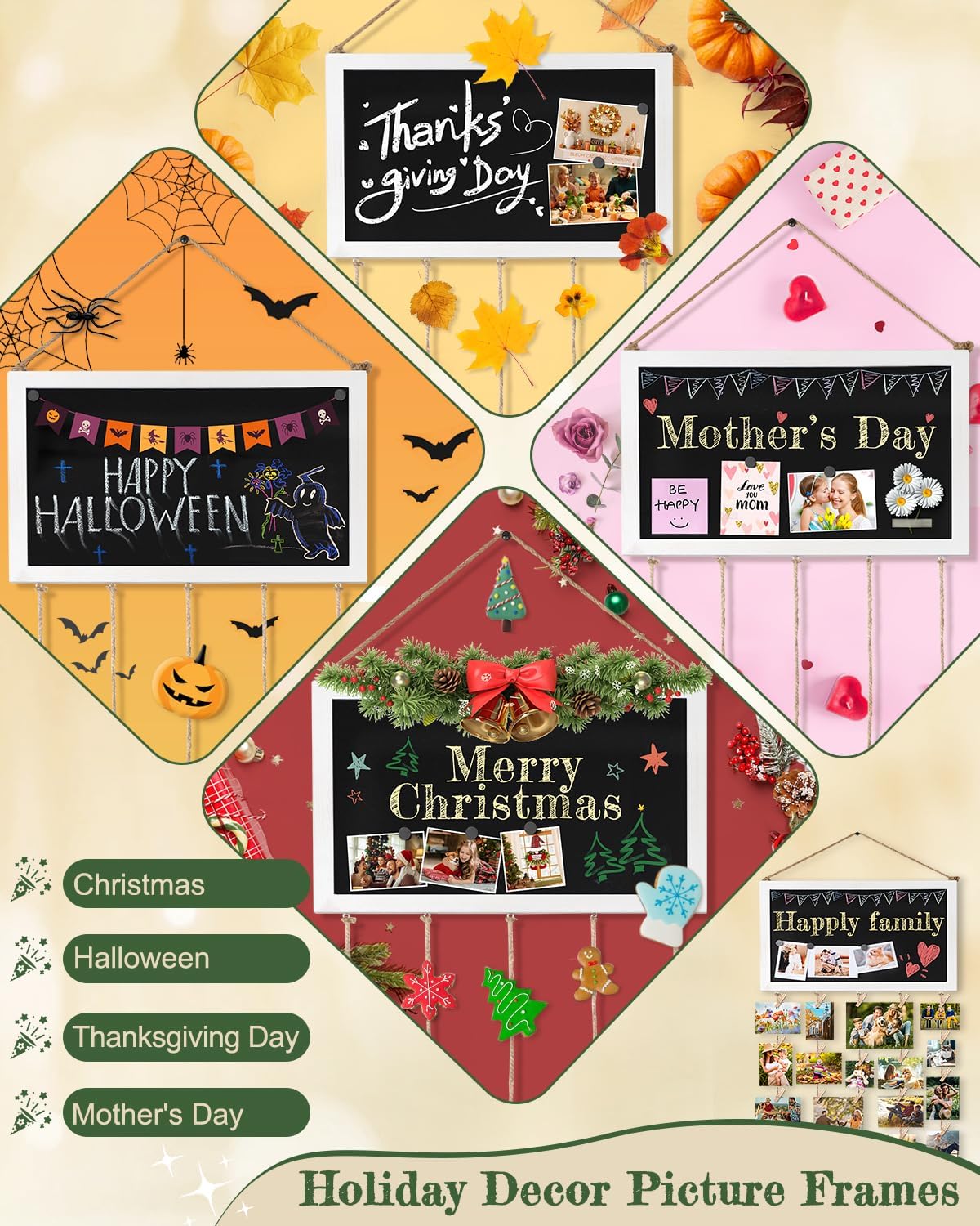 Bikoney Large Picture Board Picture Frames Collage Photo Hanging Display Wood Rustic Frames for Wall Decor and Dorm Room Decor with Blackboard Self Adhesive Hooks No Holes Drilling