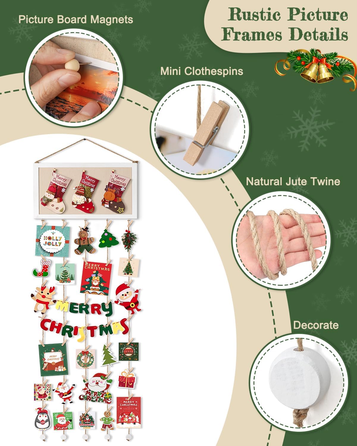 Bikoney Large Collage Picture Frame with Bulletin Board, Hanging Photo Display for Multiple Pictures, Wall Photo Organizer with 30 Clips & 6 Pushpins, Self Adhesive Hooks โ No Drill Wood Photo Board for Room Decor