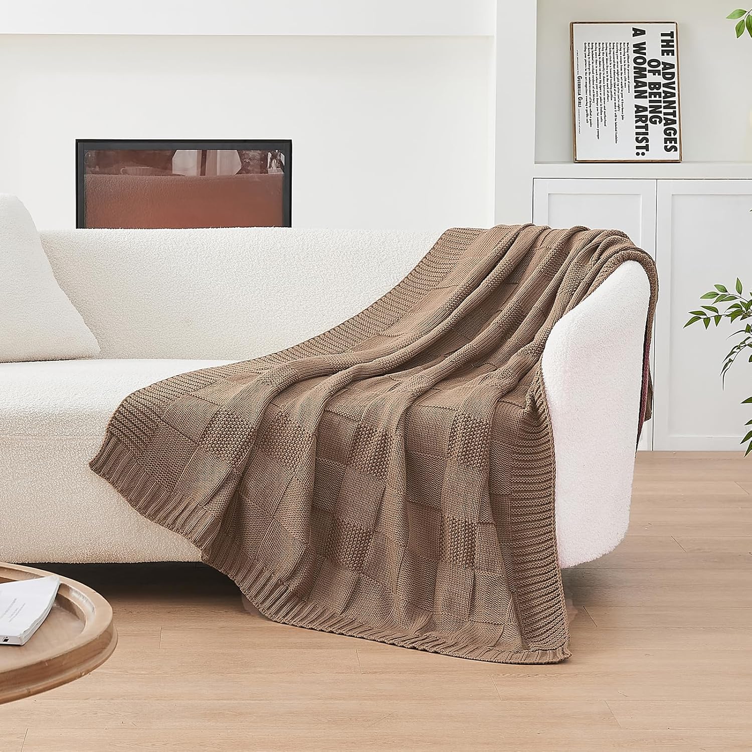 - DESIGN & STYLISH:The checkerboard pattern integrated with seed-stitch knit looks more classic and cute.This unique design gives the throw blanket a homespun look that's relaxed and inviting.This knit design is equally soft and chic, keeping you warm in style. It will look amazing draped over any couch or over the end of a bed to provide that sumptuous cozy look