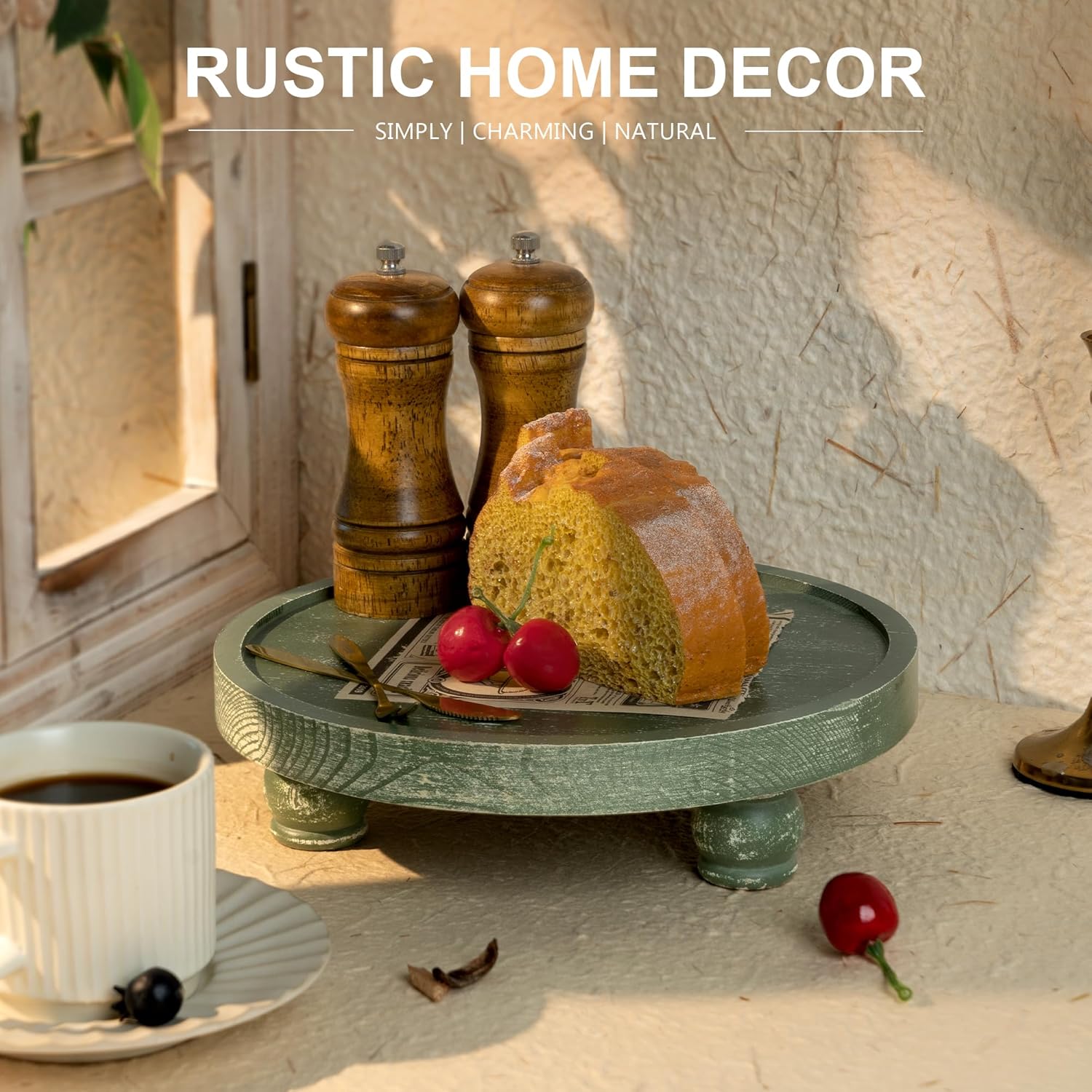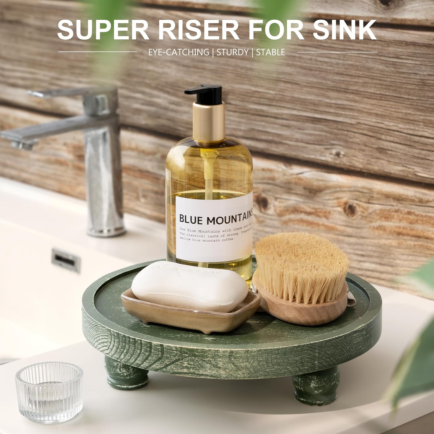 EOSAHR Farmhouse Pine Wood Riser for Home Decor – Round Pedestal Stand for Coffee Table & Kitchen Sink – Stylish Display Stand for Dish Soap Dispenser, Candles, Plants, and Cupcakes (Green)