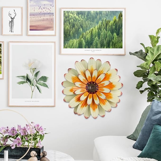 - 【ENLIVEN YOUR SPACES】- Let’s bring your wall or fence to life. The awe-inspiring metal flower wall art can be displayed in bedroom, living room, bathroom, office, study, baby room, kitchen, foyer, porch, patio, garden, and more. Measuring 16 x 16 x 1.2 inches