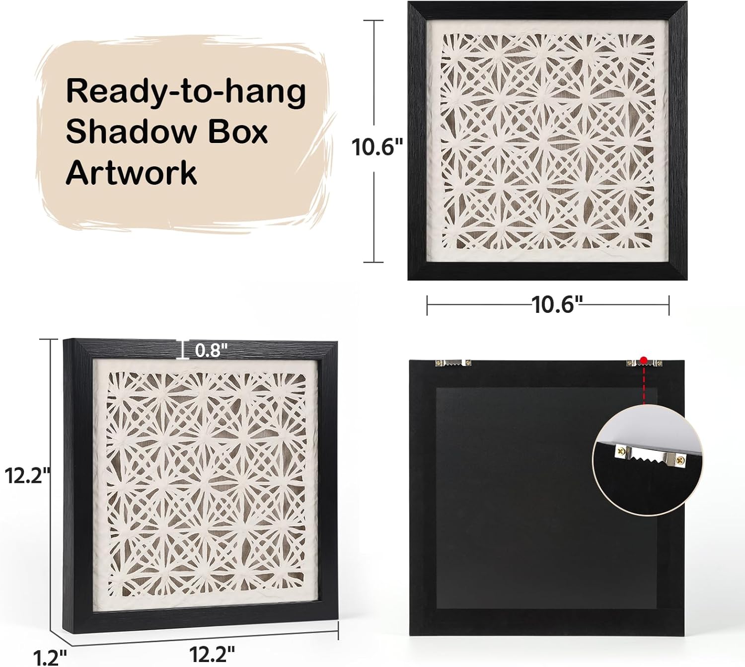 - Choose the Uniqueness: Discover the epitome of artistic elegance and wake up your walls with our Framed Rice Paper Wall Art. Featuring intricate paper cutouts in a mesmerizing abstract style, housed in a sleek black shadow box, this paper artwork set effortlessly blends modern sophistication with timeless charm. A perfect addition to any living or working spaces