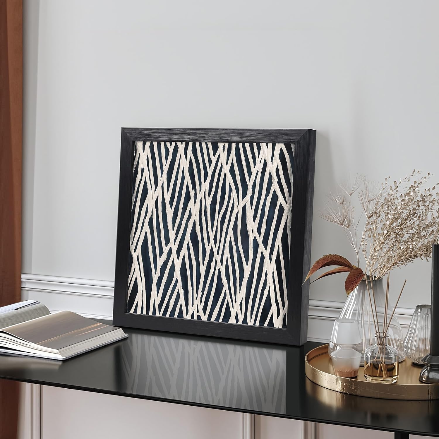 - Choose the Uniqueness: Discover the epitome of artistic elegance and wake up your walls with our Framed Rice Paper Wall Art. Featuring intricate paper cutouts in a mesmerizing abstract style, housed in a sleek black shadow box, this paper artwork set effortlessly blends modern sophistication with timeless charm. A perfect addition to any living or working spaces