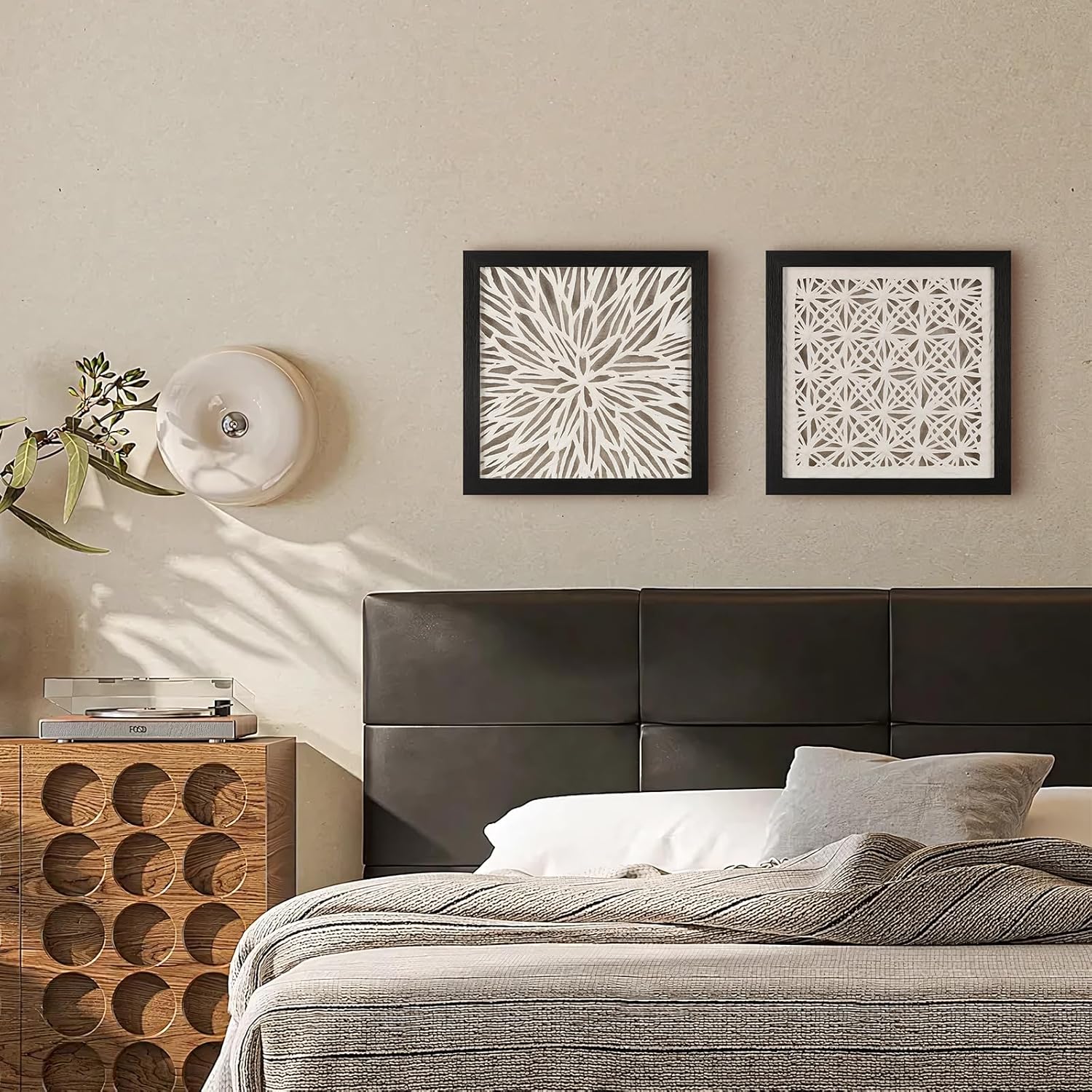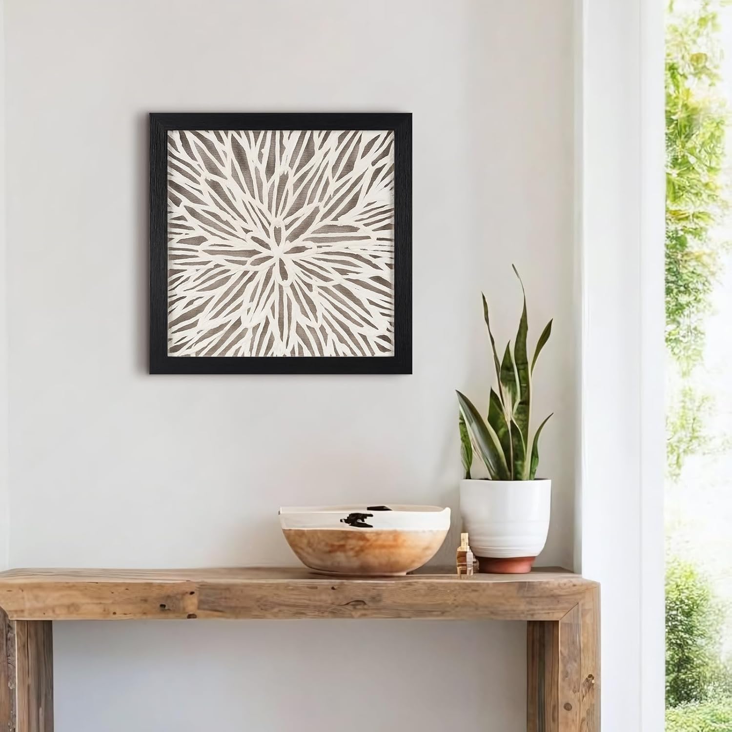 FOLKOR Framed Wall Art Black and White for Rustic Farmhouse Home Decor, 12" Rice Paper Neutral Wall Art Hanging Sculpture, Abstract Floral Artwork for Entryway Fireplace Above Bed Tv Accent