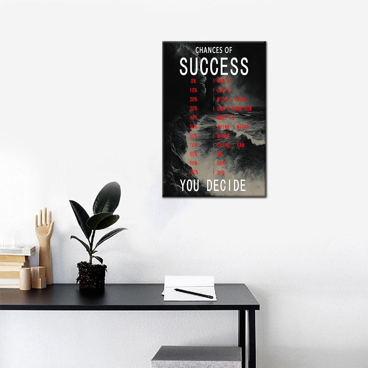 Inspirational Canvas Wall Art Success Motivational Positive Poster Inspiring Painting Print Wall Picture for Office Living Room Home Decor Framed Artwork [12''Wx18''H]