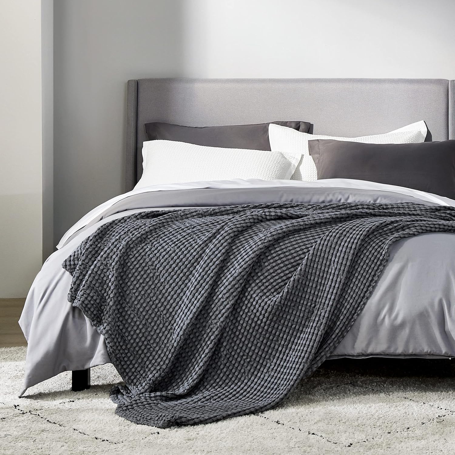 Bedsure Cooling Cotton Waffle Full Size Blanket - Lightweight Breathable Blanket of Rayon Derived from Bamboo for Hot Sleepers, Luxury Throws for Bed, Couch and Sofa, Dark Grey, 80x90 Inches