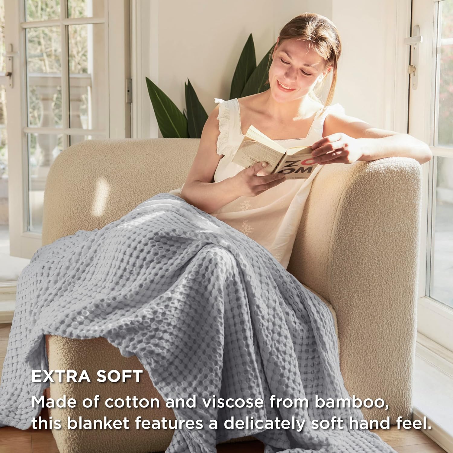 Bedsure Cooling Cotton Waffle Full Size Blanket - Lightweight Breathable Blanket of Rayon Derived from Bamboo for Hot Sleepers, Luxury Throws for Bed, Couch and Sofa, Grey, 80x90 Inches