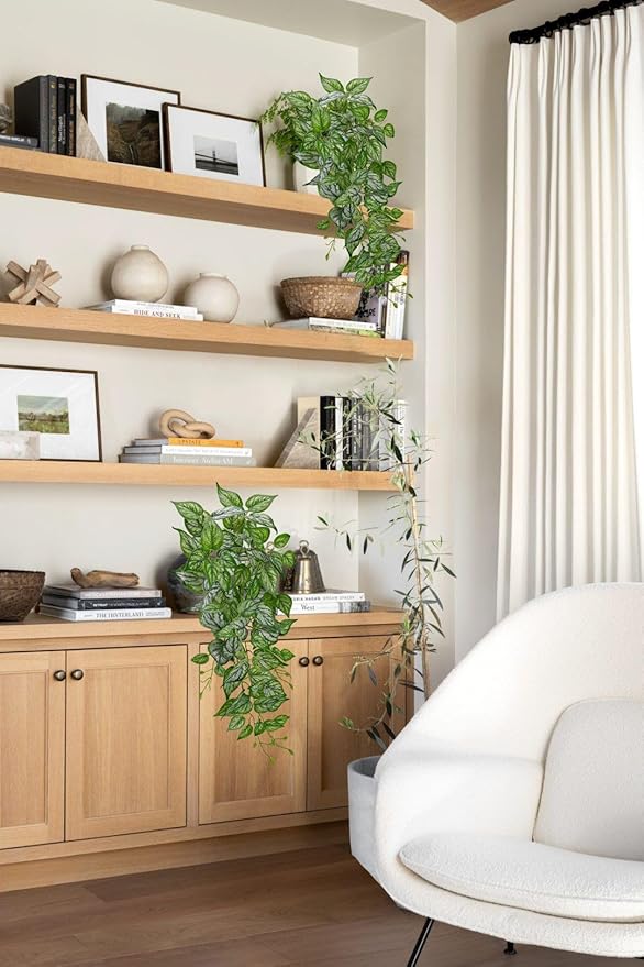 - 🌱Lifelike & Vibrant - Each order includes 2 pcs Pothos fake hanging plants. The plants lengths are 26". They boast a lifelike appearance with vibrant colors and realistic details, adding a touch of greenery to your small space year-round.