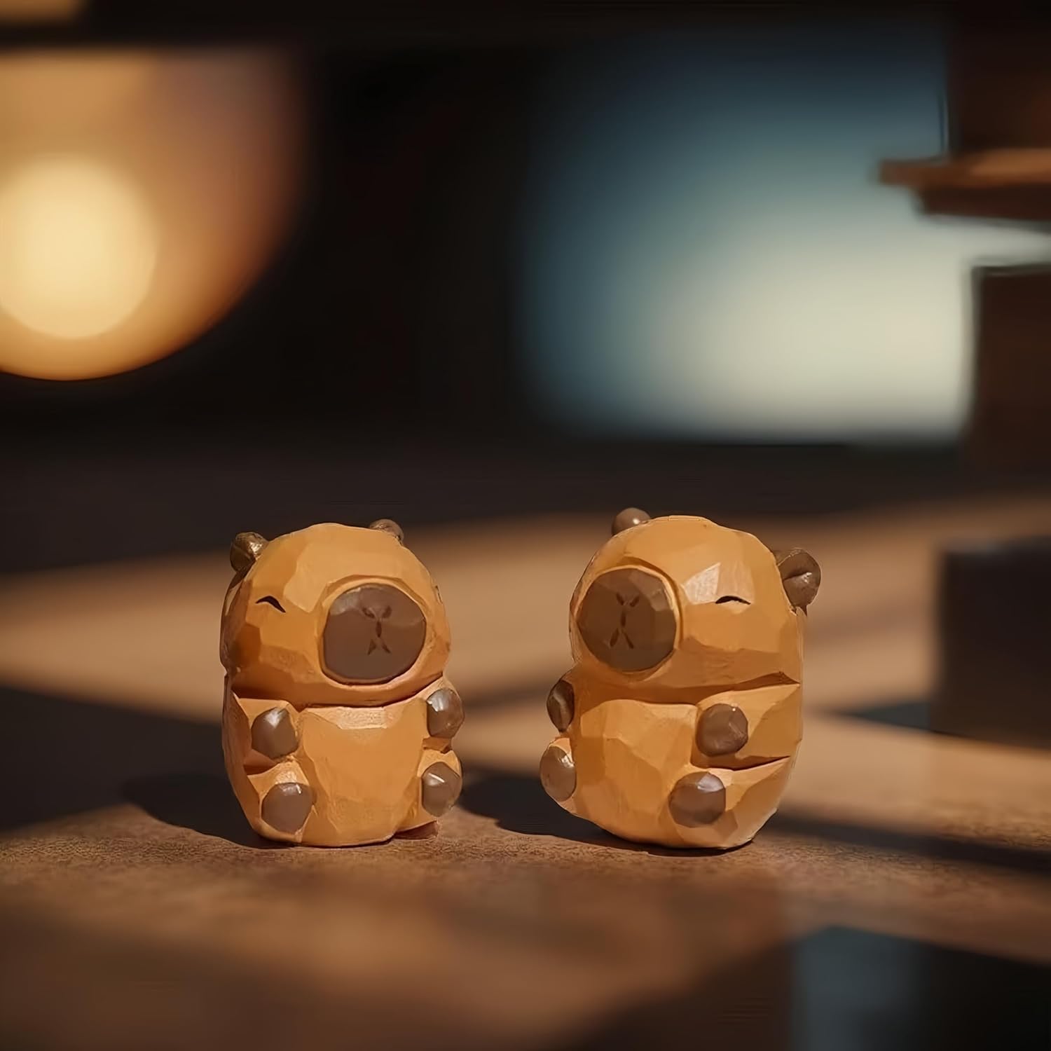 Mini Carved Wooden Capybara Figurines, 3PCS Handmade Capybara Figurine with Base Sculpture Set, Cute Capybara Statue Home Decor Art Carving Work, Desktop Ornaments, Gifts for Boys and Girls
