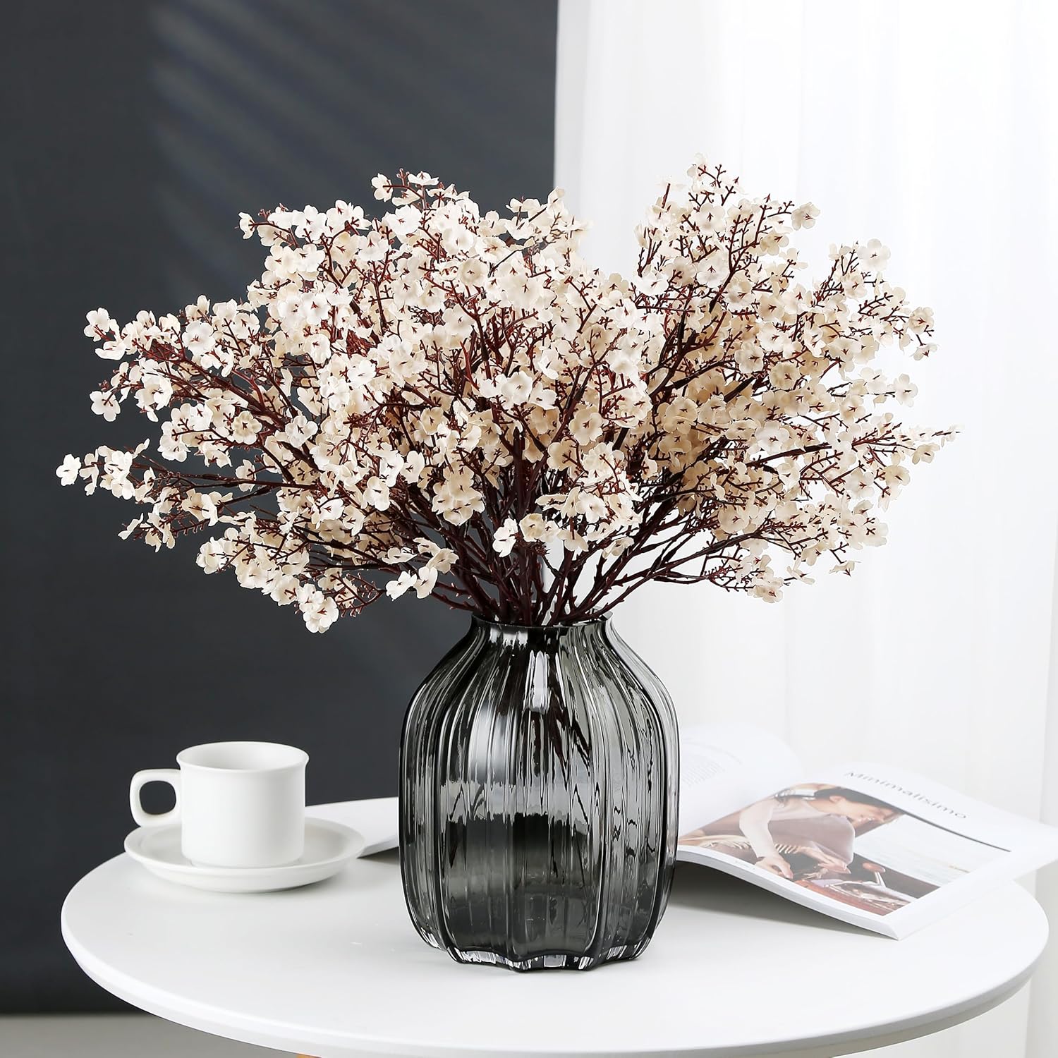 JAKY-Global Fake Fall Flowers Artificial for Decoration Faux Silk Babys Breath Floral Stems Home Indoor Halloween Decor Centerpieces Tables Vase Beige 12pcs