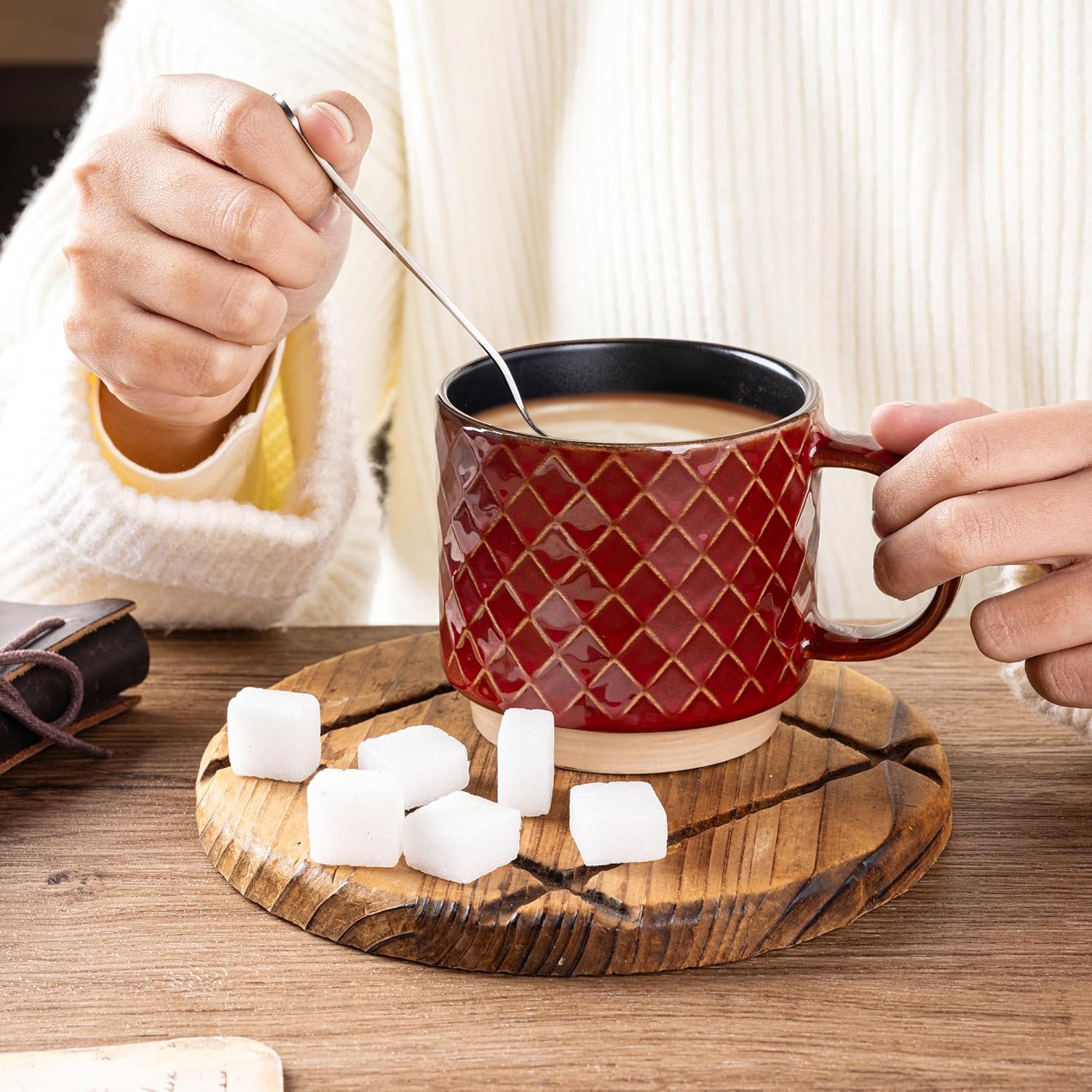 GBHOME 15OZ Stackable Coffee Mugs, Ceramic Coffee Cups with Texture Patterns for Man,Woman,Dad,Mom, Modern Coffee Mugs Set of 4 for Latte/Cappuccino/Cocoa. Dishwasher&Microwave Safe, Red