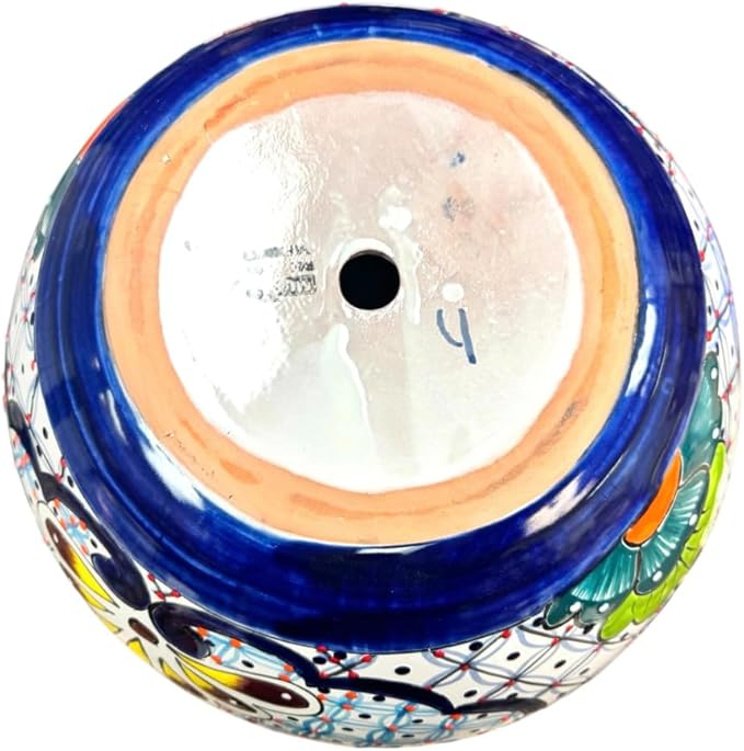 Talavera Michoacana Planter XL Pot Folk Art Multicolor Mexican Pottery Home Decor Hand Painted Garden Indoor Handmade Outdoor 18.5" (Cobalt Multicolor Blue)