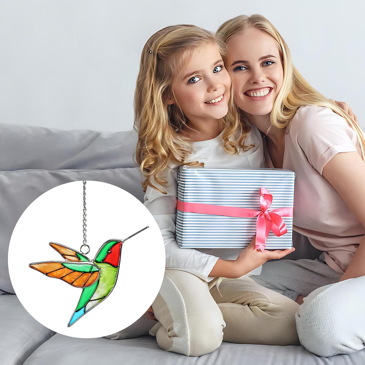 - DESIGN: Beautifully crafted stained glass hummingbird ornament featuring vibrant multicolor patterns that catch and reflect light