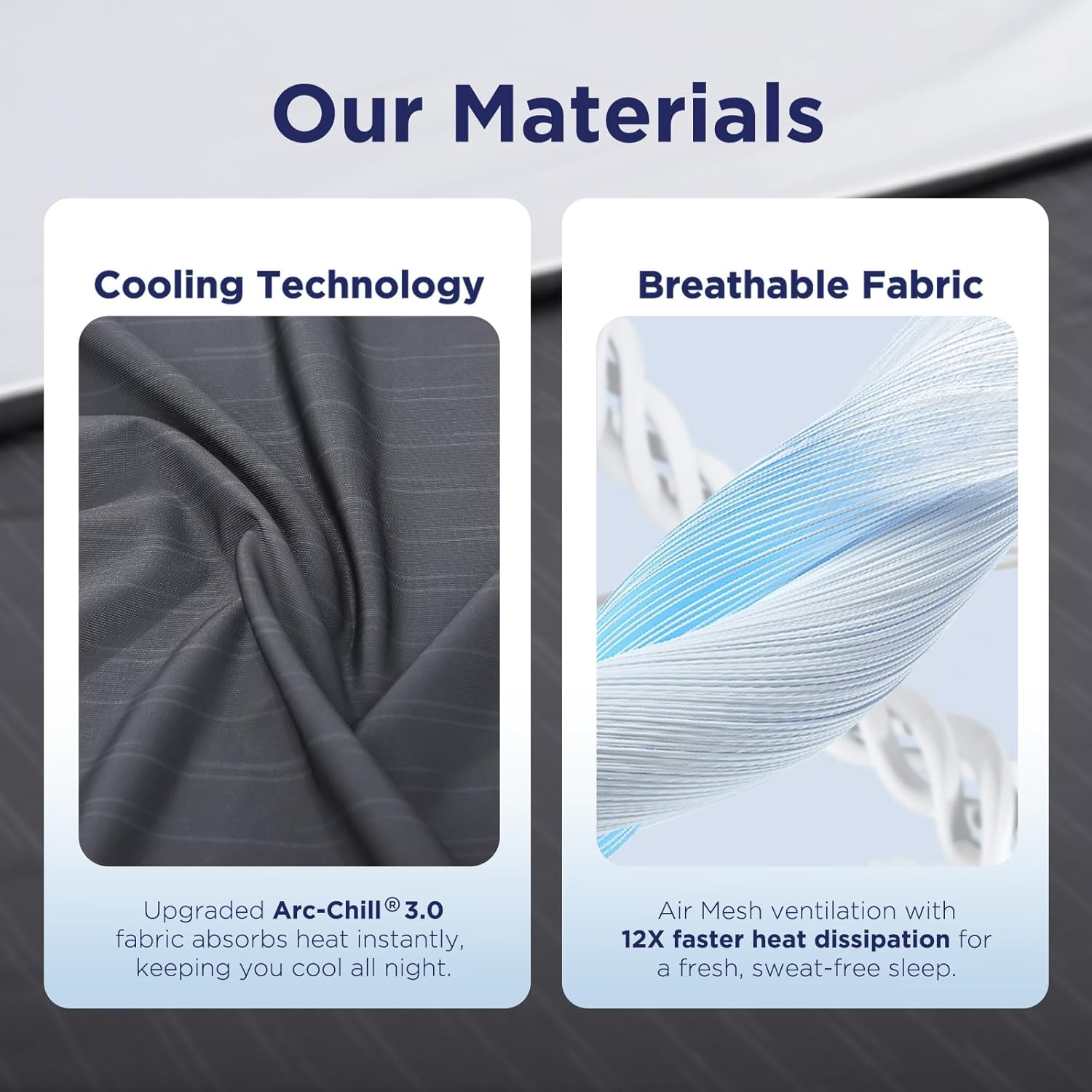 - Dual-Sided Arc-Chill 3.0 Cool Tech: Upgrade your sleep with Arc-Chill 3.0 fabric, featuring a Q-max over 0.5. Unlike ordinary comforters, this material instantly absorbs body heat, lowering skin temperature by 9°F on contact. Designed with double-sided cooling fabric, it delivers all-night refreshment without flipping. Say goodbye to restless, sweaty nights—this cooling comforter helps you relax, fall asleep faster, and stay cool till morning. Perfect for hot sleepers or those sensitive to heat!