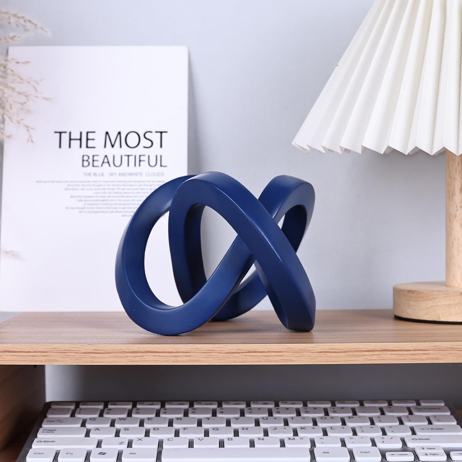- 【Sophisticated Knot Design】 This geometric knot sculpture combines modern and mid-century style, ideal for adding a decorative accent to any home. Available in gold, navy, and white finishes, it effortlessly elevates the decor of your living room, office, or table.