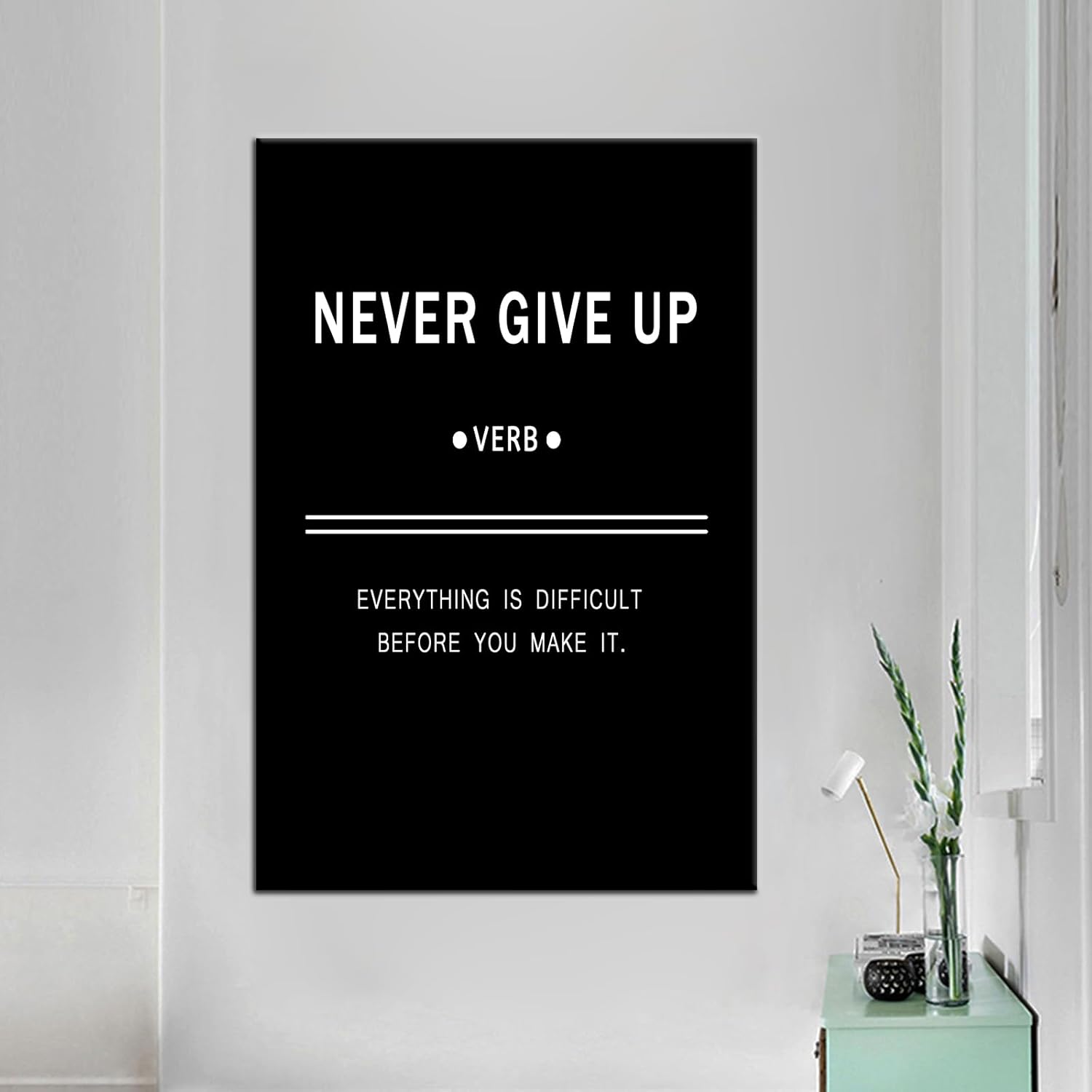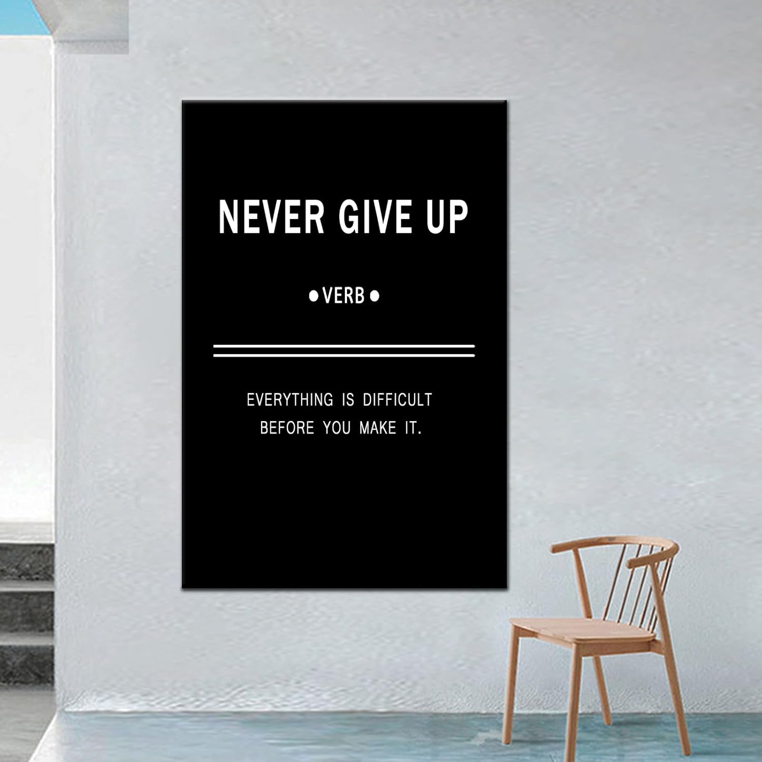 Inspirational Canvas Wall Art Motivational Never Give Up Painting Success Picture Poster Positive Motto Office Quotes Print Artwork for Living Room Workplace Stretched Ready to Hang [24''Wx36''H]