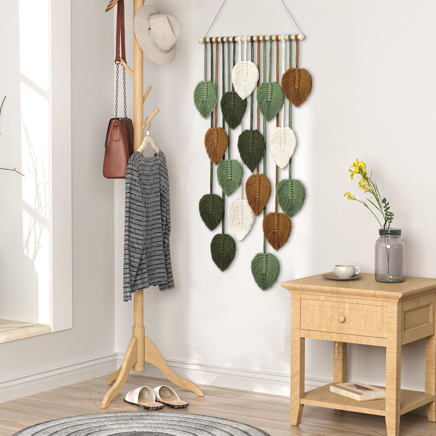 KHOYIME Vertical Macrame Wall Hanging Boho Home Decor, Long Narrow Chic Wall Art Bohemian Woven Leaves Tapestry Vintage Decorations for Front Door Indoor Entrance Living Room Bedroom 16.5"W x 37.5"L