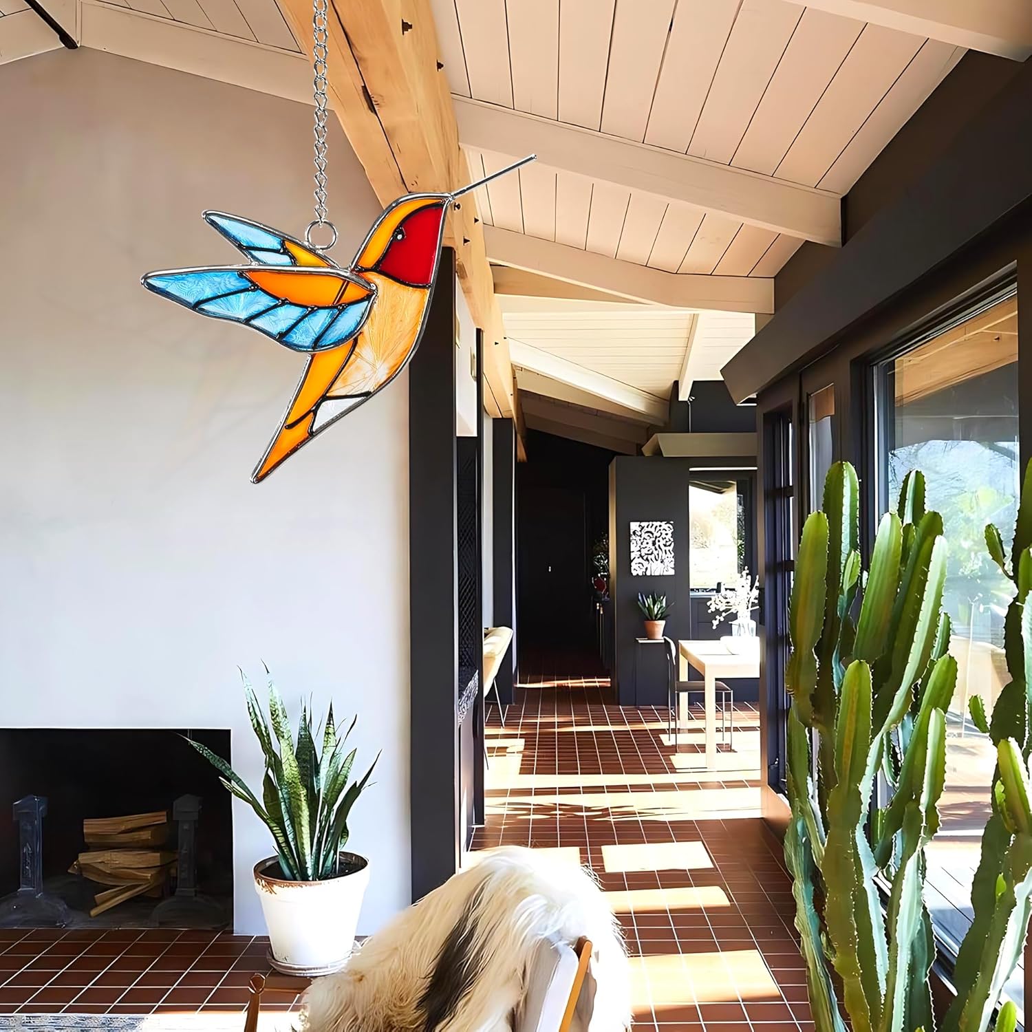 - DESIGN: Beautifully crafted stained glass hummingbird ornament featuring vibrant multicolor patterns that catch and reflect light