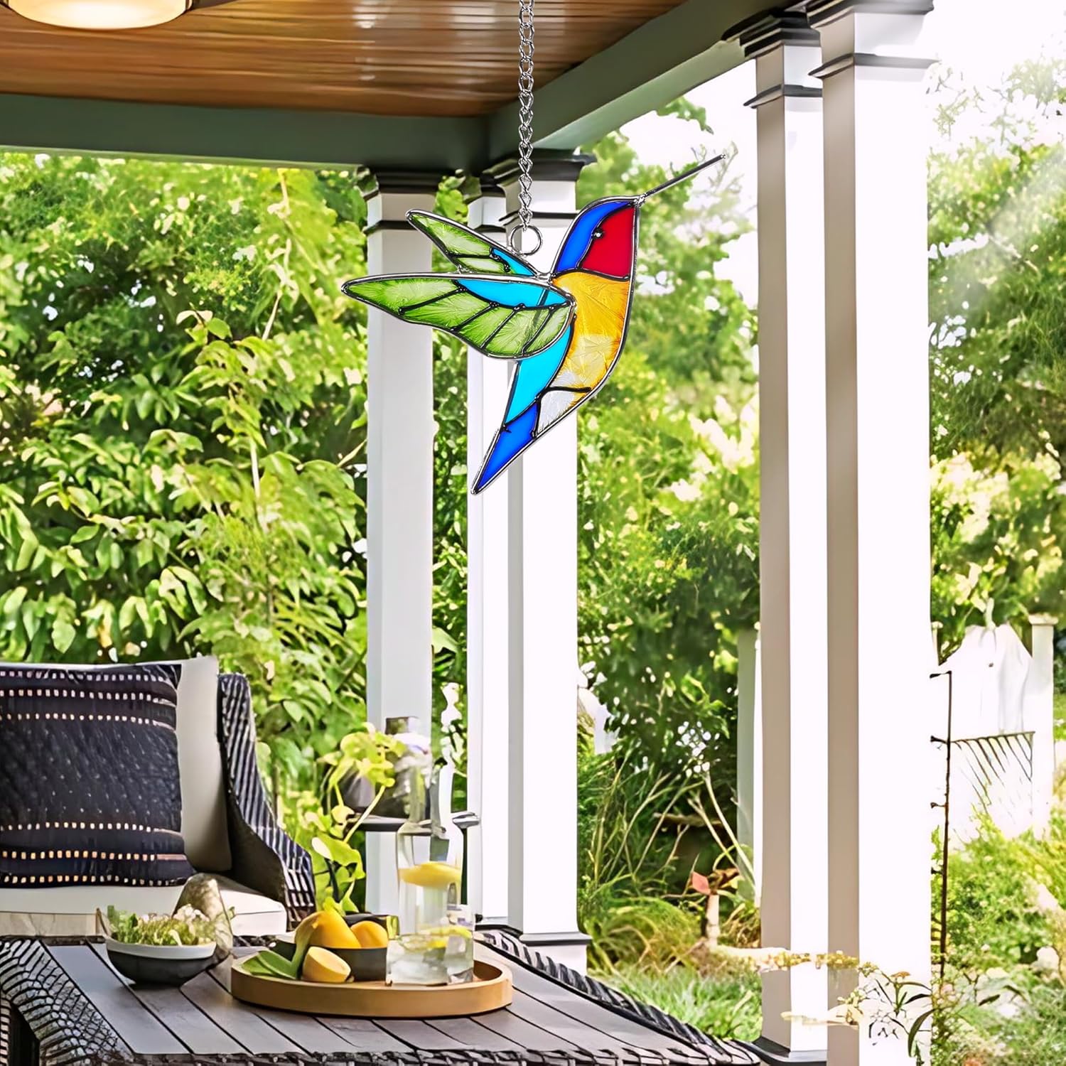 - DESIGN: Beautifully crafted stained glass hummingbird ornament featuring vibrant multicolor patterns that catch and reflect light