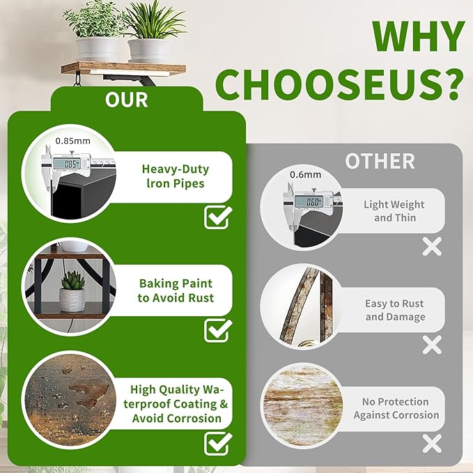 - Using Well-Made Material: This frame is made of heavy duty steel frame and well-made MDF boards. The heavy duty iron tube is coated with a special baking paint that prevents corrosion and rust. The iron pipe joints are welded with well-made iron to with stand different kinds of potted plants, Each layer consists of thickened particleboard offering resistance to cracking and coated with water-resistant layer to avoid corrosion, warping and curling caused by residual water