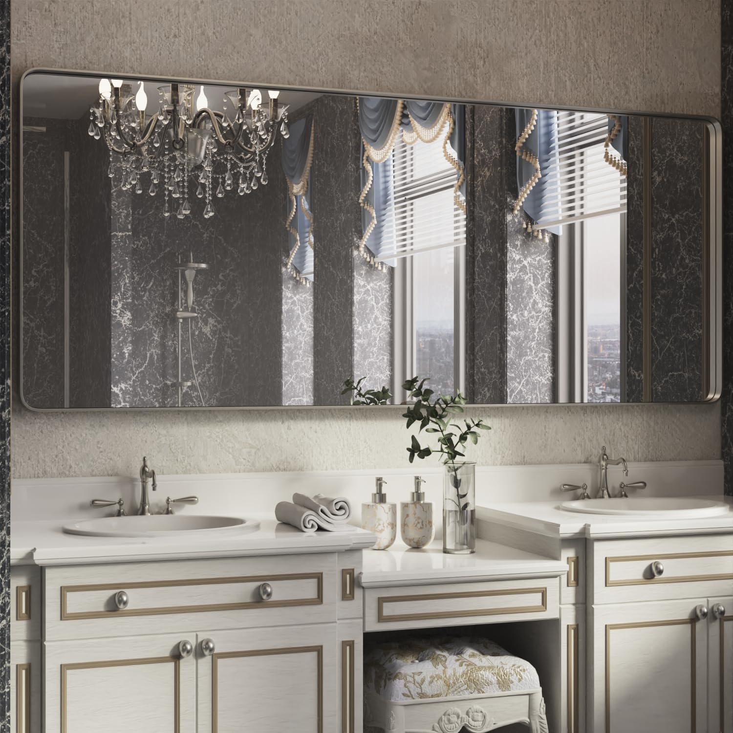 ISKM Large Silver Wall Mirror, 84 x 32 Inch Metal Silver Frame Mirror for Bathroom in Premium Stainless Steel for Living RoomBedroomEntryway (Horizontal/Vertical)