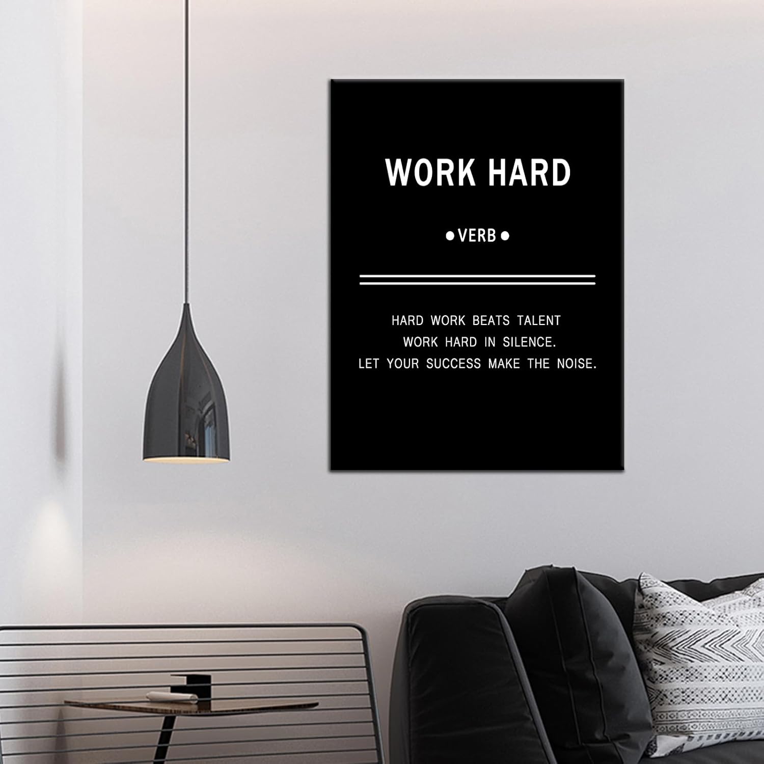 Inspirational Wall Art Work Hard Motivational Poster Quotes Wall Decor for Living Room Bedroom Office Bathroom Canvas Print Artwork Framed Wall Decor Ready to Hang [18''Wx24''H]