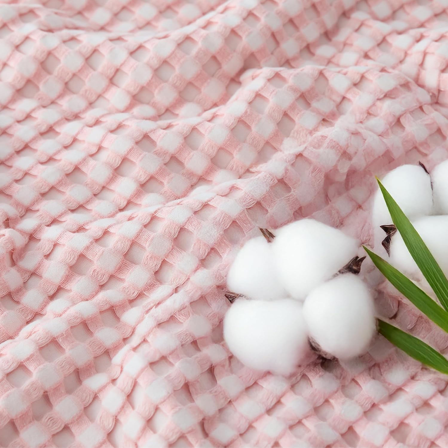Bedsure Cooling Cotton Waffle Queen Size Blanket - Lightweight Breathable Blanket of Rayon Derived from Bamboo for Hot Sleepers,Spring Pink, 90x90 Inches