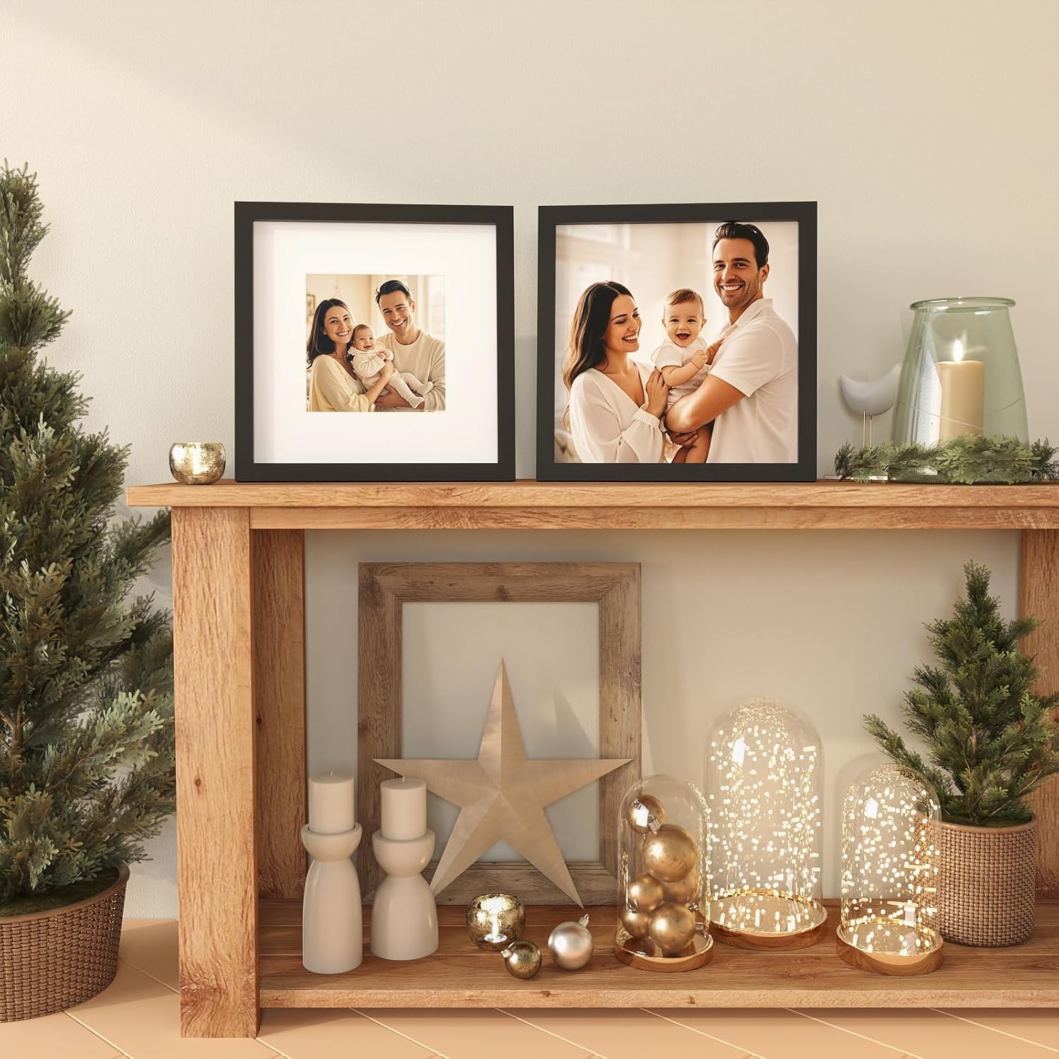 - SOLID WOOD:The Kinlink 10x10 square picture frames are specially designed to fit standard pictures 10x10 without mat 6x6 with mat. Made from high-quality lightweight solid wood, these frames have a transparent acrylic glass front that provides a clear view of your picture while preserving your precious memories. Before use, remember to remove the protective film on the glass.