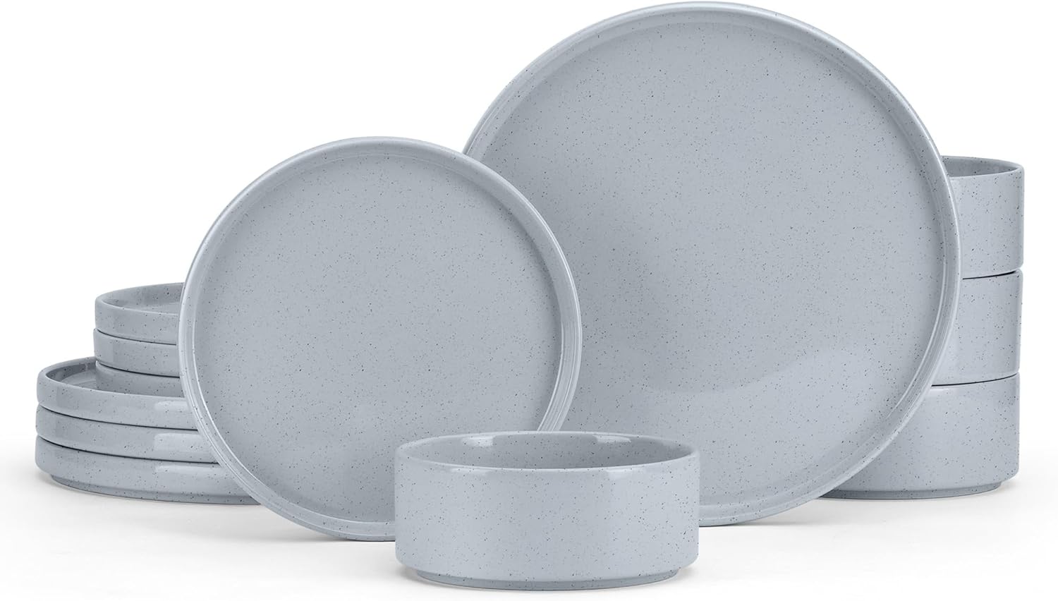 - EXQUISITE GLAZED & SPECKLED DESIGN: Durable glaze increases surface hardness to resist chipping and scratching, Adds smooth shiny finish for a pleasant touch and enhanced visual dining experience, Minimalist gray look with subtle speckles complements your kitchen and makes food more appetizing