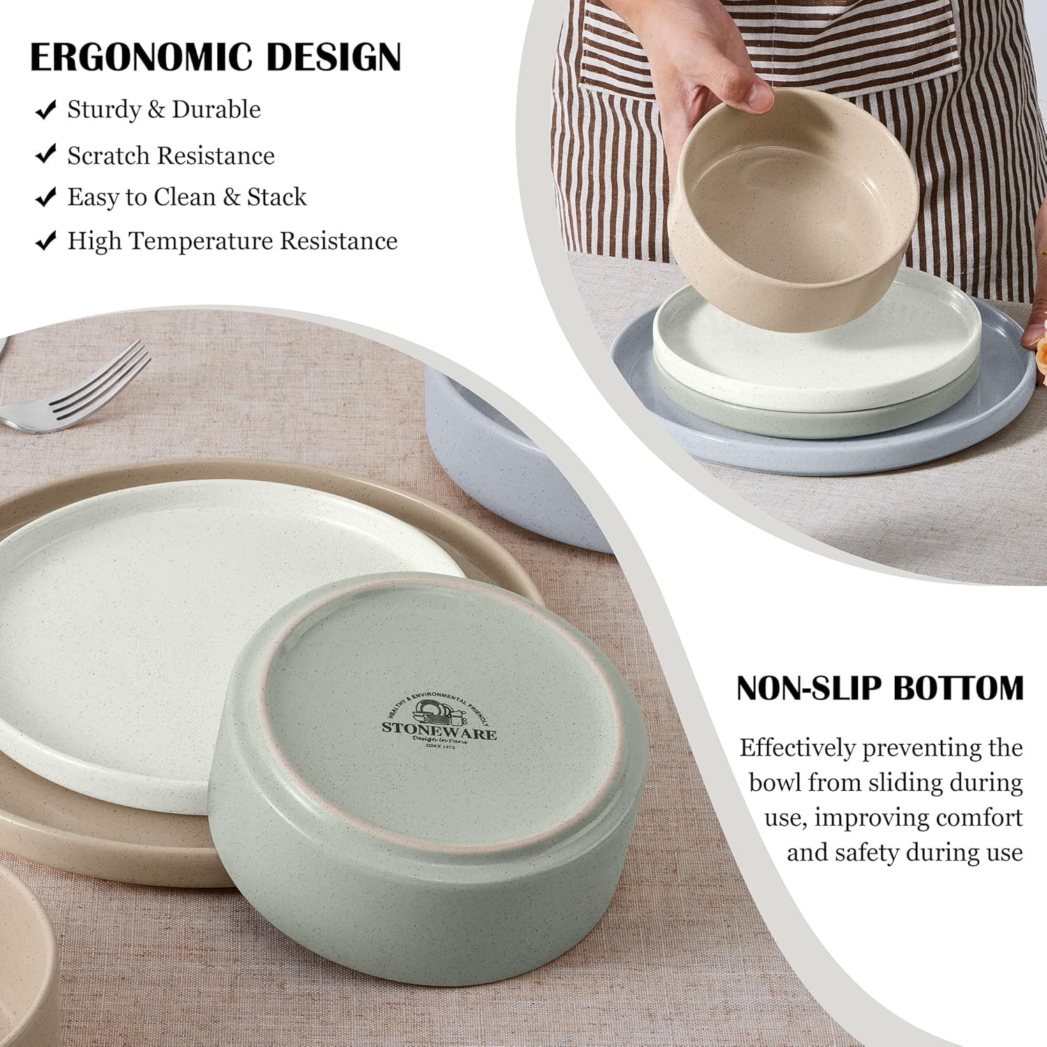 - HEALTHY & DURABLE STONEWARE: Made from natural clay fired at over 2340℉, Hardened to be a durable, lead-free and non-toxic porcelain that is both sturdy and healthy, Offers excellent stability and heat resistance, Safe for serving hot and cold foods, Ideal for everyday dinnerware sets
