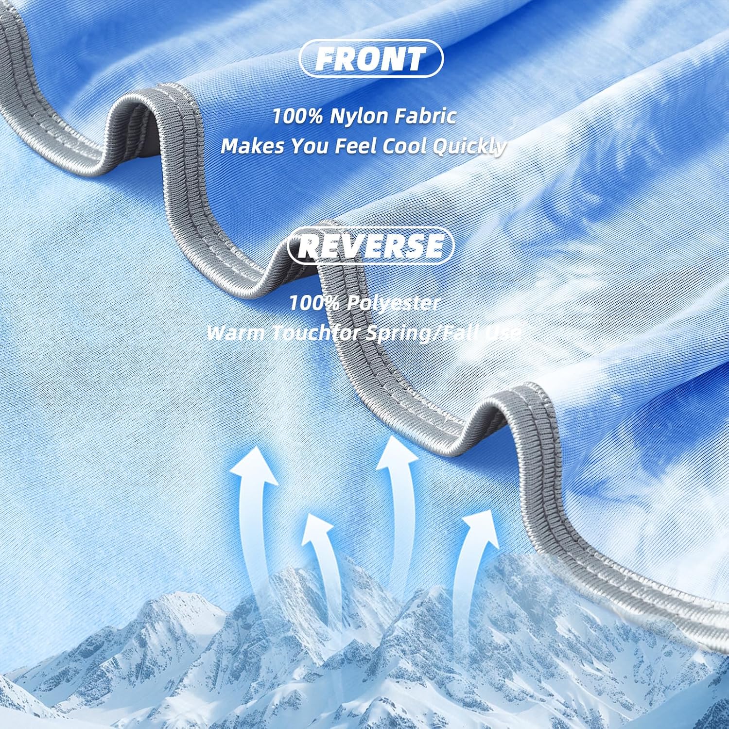 - COOLING AND BREATHABLE: The front side of cooling blanket twin is 100% cooling nylon fabric enabling hot sleepers to stay drier and cooler. The reverse side crafted with high-performance breathable blanket materials ensures year-round comfort. Oeko-tex standard 100 certified means you can confidently sleep under cold blankets for sleeping directly against your skin, enjoy ice blanket blending of softness, skin-friendliness, breathability, and soothing qualities.