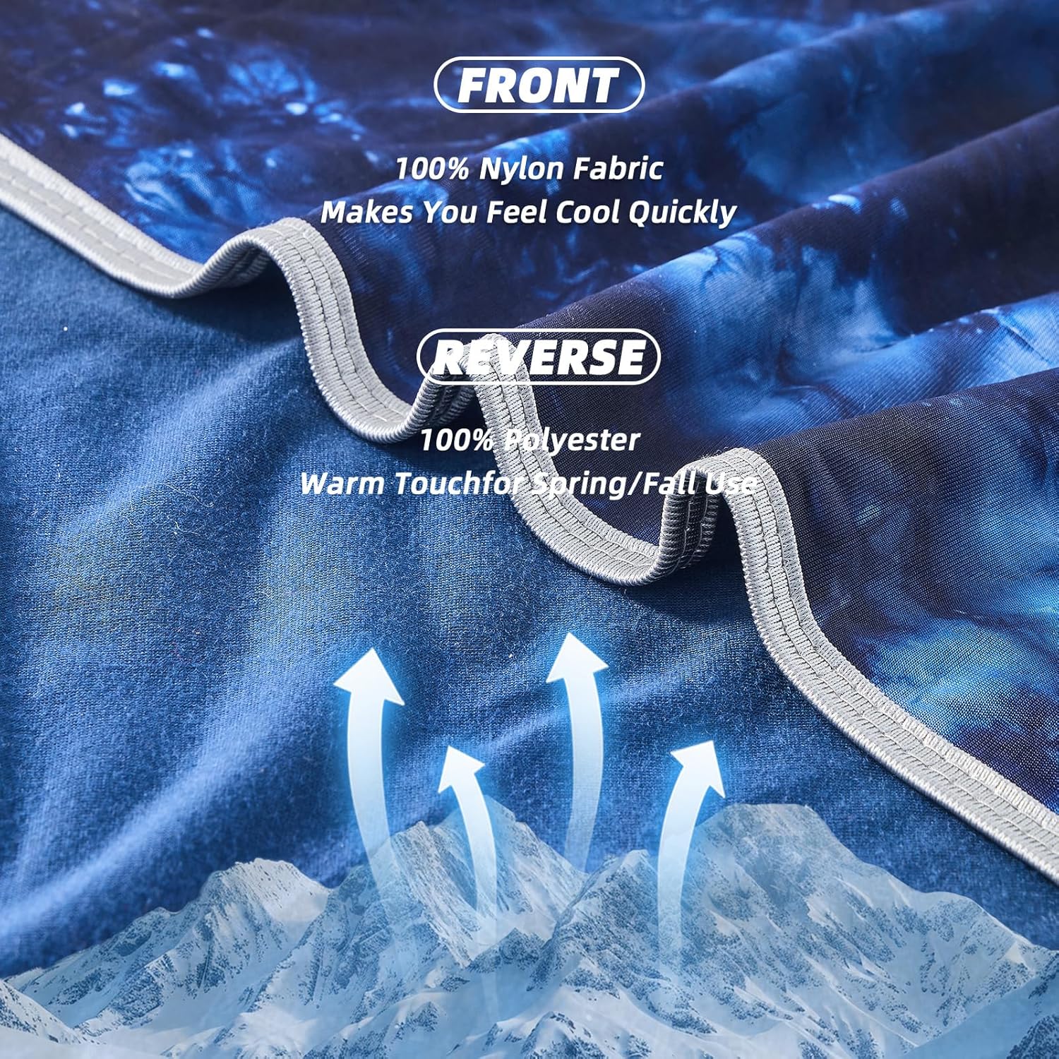 - COOLING AND BREATHABLE: The front side of cooling blanket king size is 100% cooling nylon fabric enabling hot sleepers to stay drier and cooler. The reverse side crafted with high-performance breathable blanket materials ensures year-round comfort. Oeko-tex standard 100 certified means you can confidently sleep under cold blankets for sleeping directly against your skin, enjoy ice blanket blending of softness, skin-friendliness, breathability, and soothing qualities.