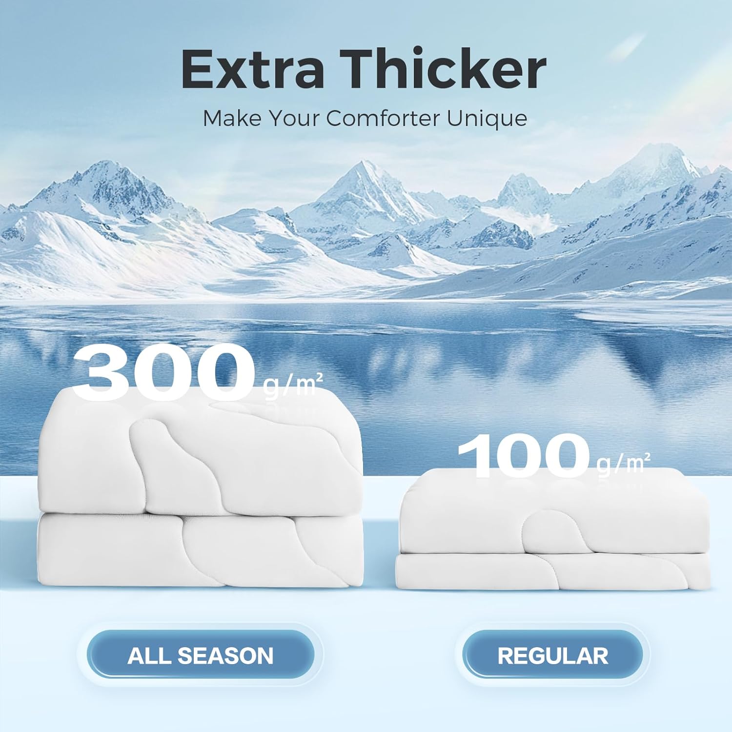 EASELAND All Season Cooling Comforter Queen, Cold Touch Fabric Absorbs Body Heat, 300GSM Super Soft, Cooling Blanket for Night Sweats Hot Sleeper (White-All Season, Queen(90"x90"))
