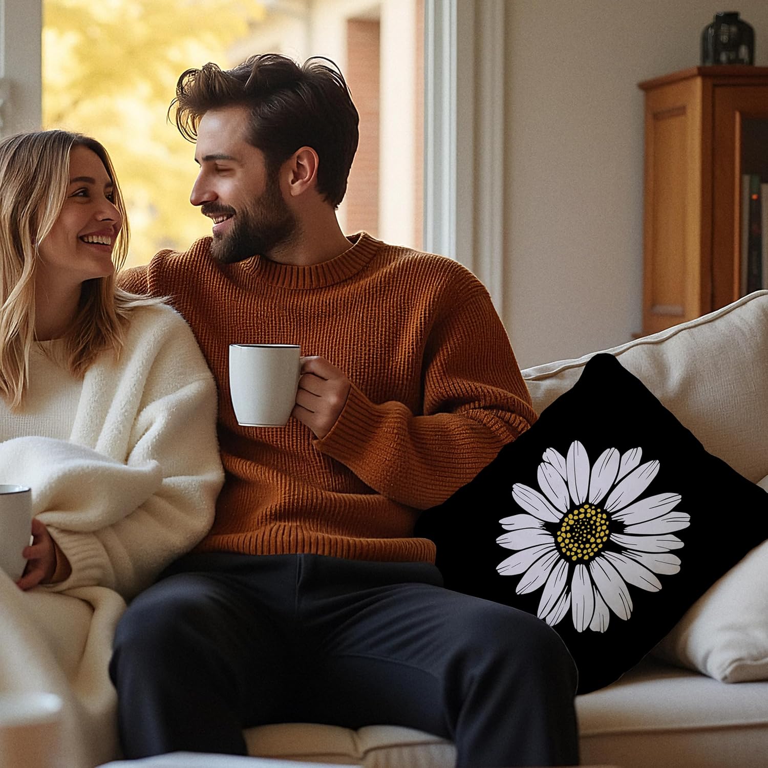 Daisy Floral Pillow Covers 18x18 Double-Sided, Daisy Flowers Wildflower Pillow Covers for Couch Bed Living Room Bedroom, Daisy Decor, Spring Summer Floral Room Decor